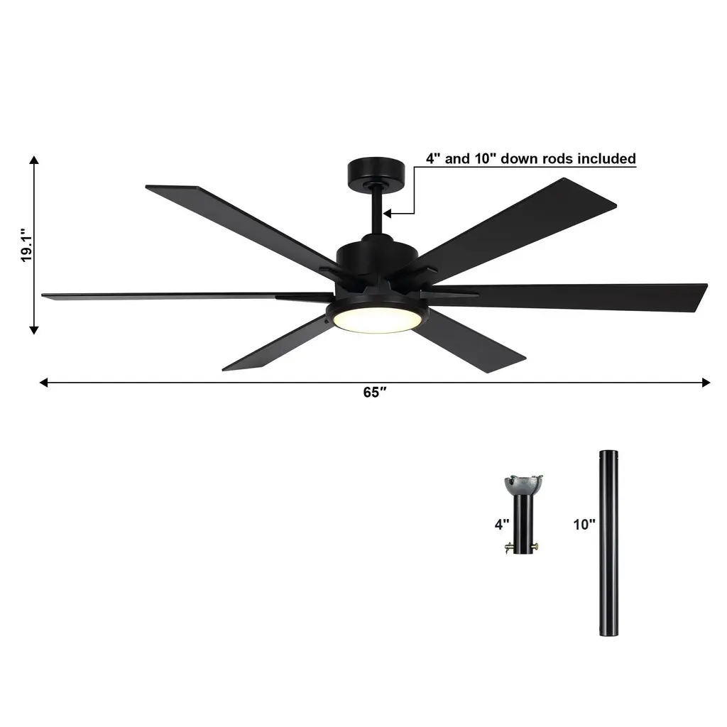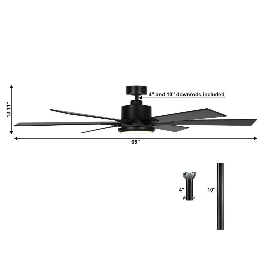 65" Amold Industrial Downrod Mount Ceiling Fan With Lighting And Remote Control - Black