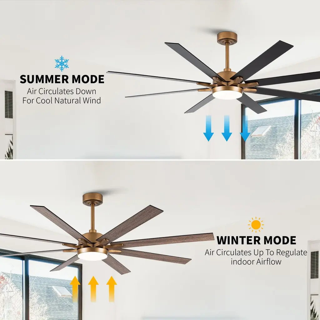 The Balachandran 65" LED Industrial Style Ceiling Fan will bring style and airflow to any room.This fan features an DC motor that provides better airflow and higher speeds with remote control. The blade has two colors, one side is black and the other side is wood color, to meet your decoration style. The light kit is also very energy efficient with its integrated 24W LED light module for long life and gives you a choice of 3000/4000/5000K lights to suit your lighting needs. This fan is suitable for indoor use in places over 350 square meters, and you can use it in places such as living rooms, bedrooms, and study rooms.