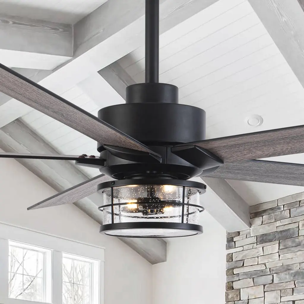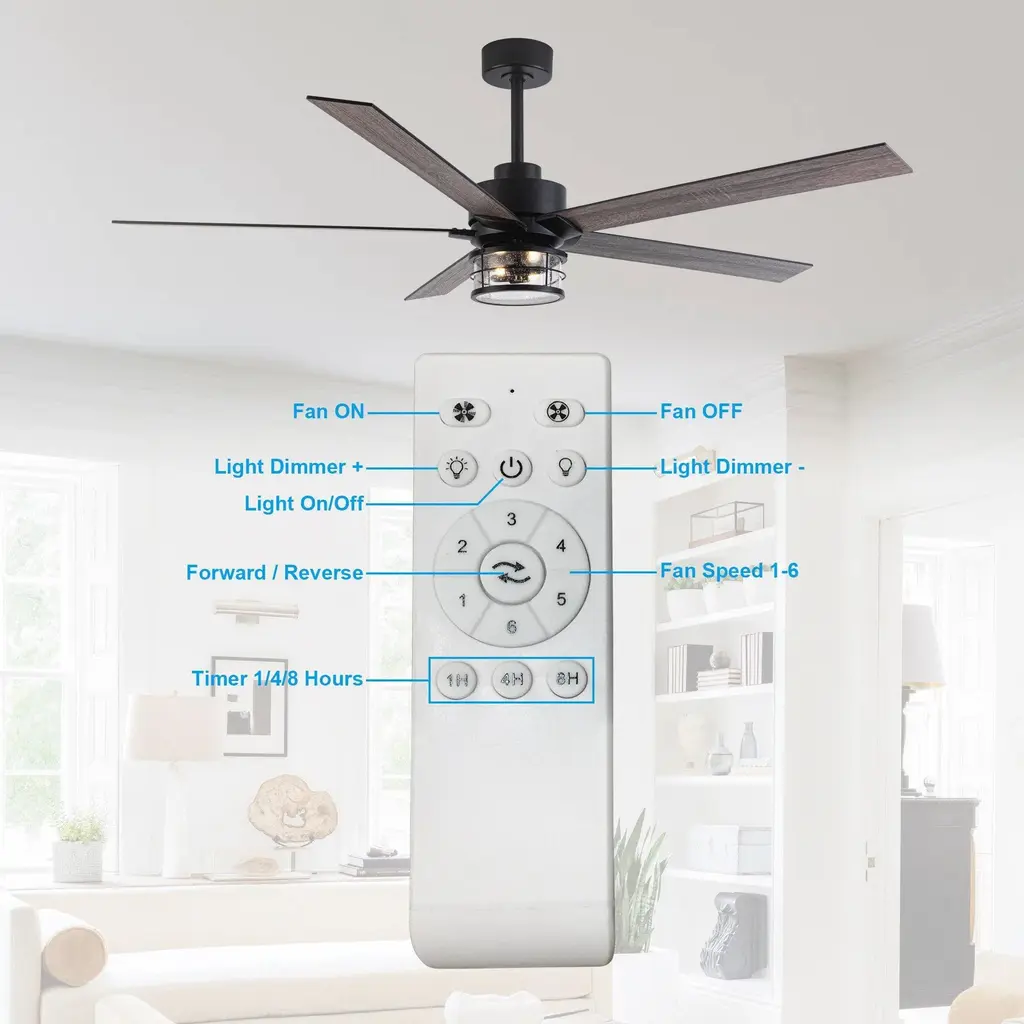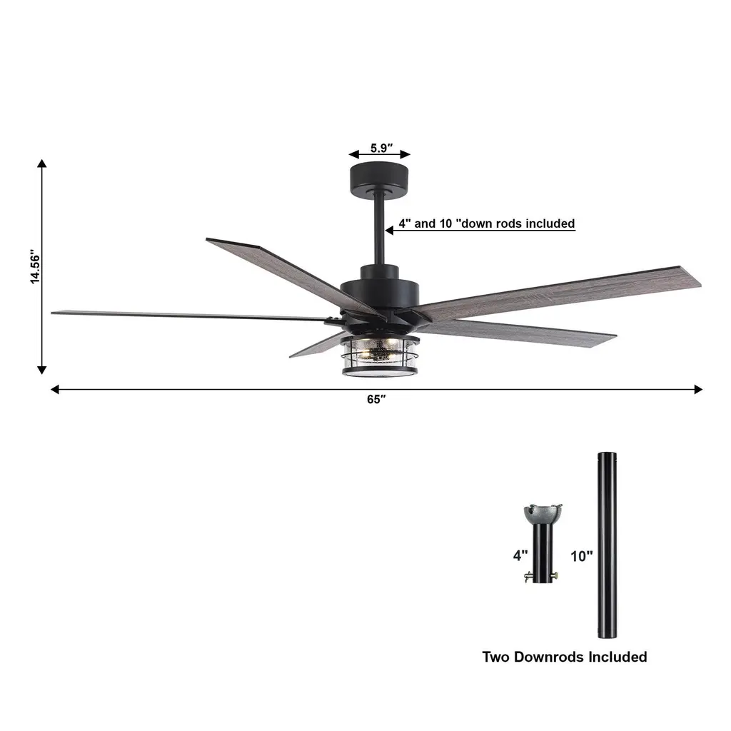 This 65 in. large ceiling fan has five blades in a matching wooden finish. It brings out a contemporary vibe with a natural rustic touch. This fan is good for a modern or industrial room. Light and fan can work independently, with no noise.