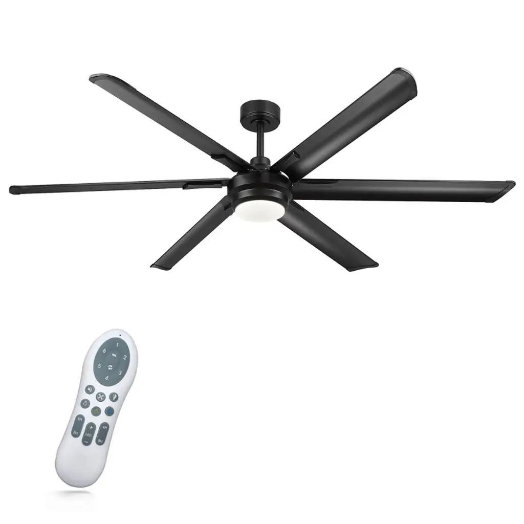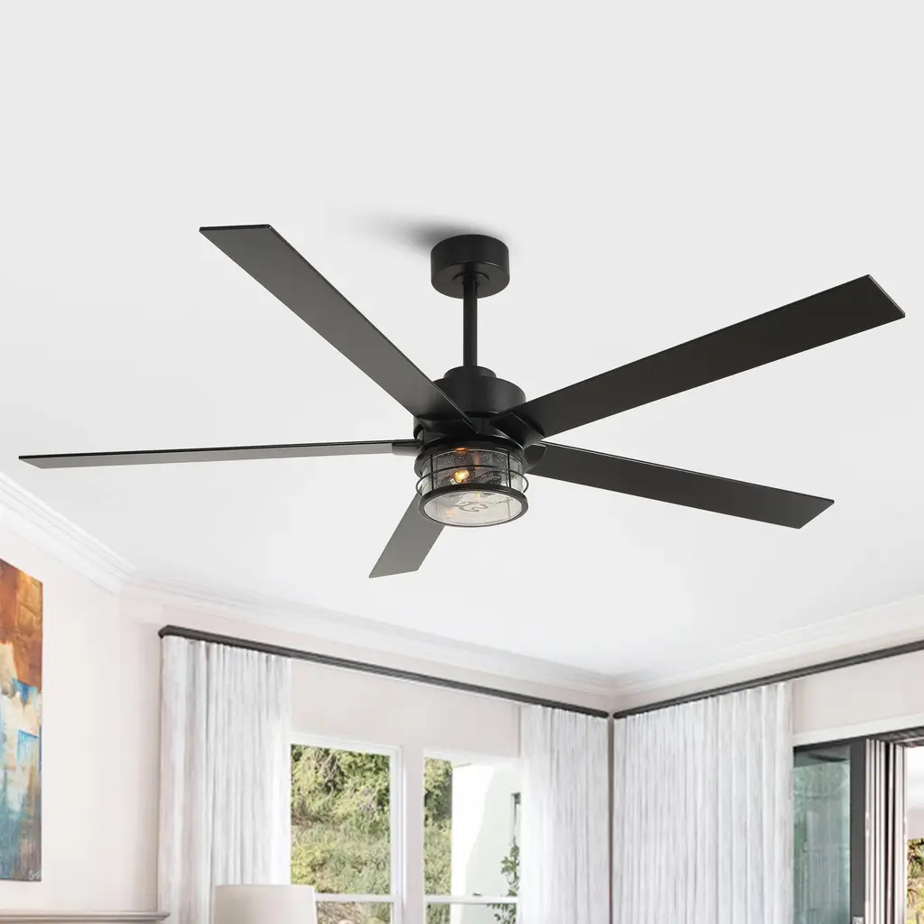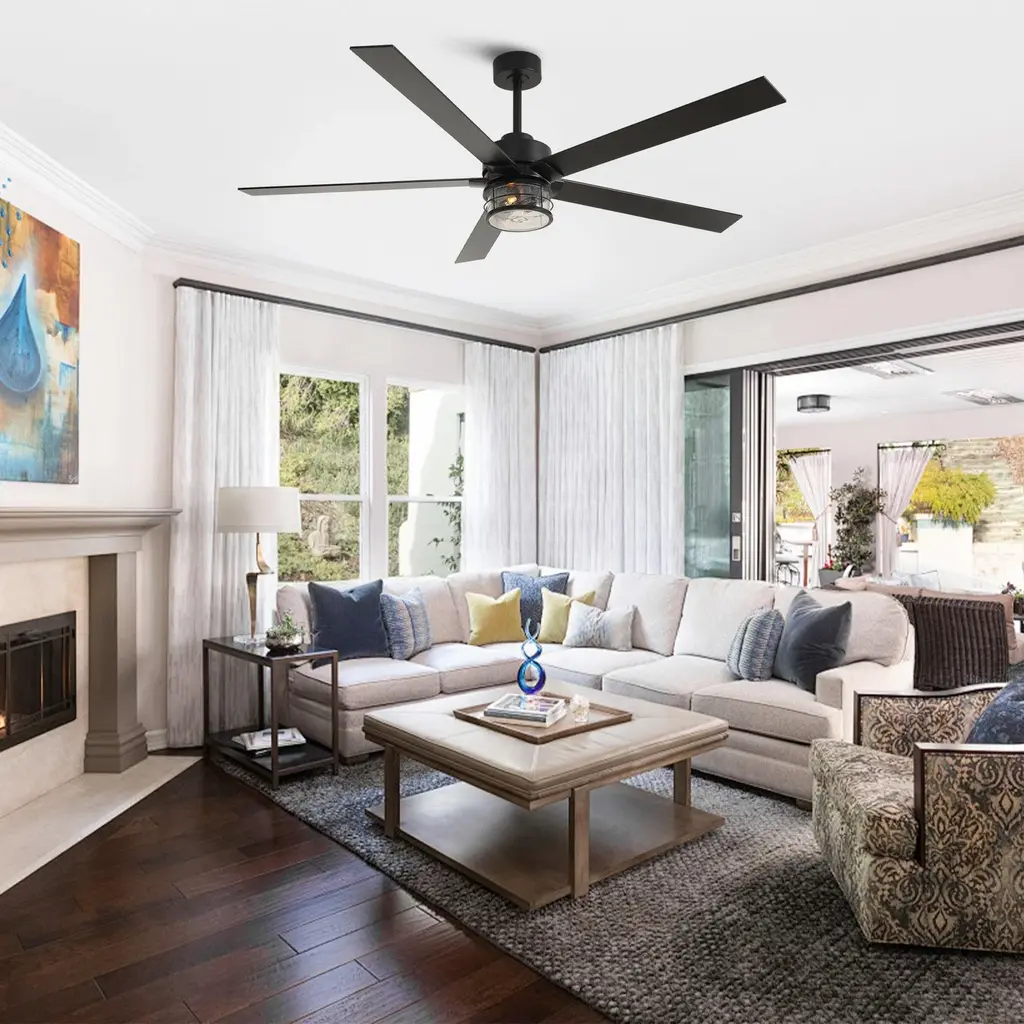 This 65 in. large ceiling fan has five blades in a matching wooden finish. It brings out a contemporary vibe with a natural rustic touch. This fan is good for a modern or industrial room. Light and fan can work independently, with no noise.