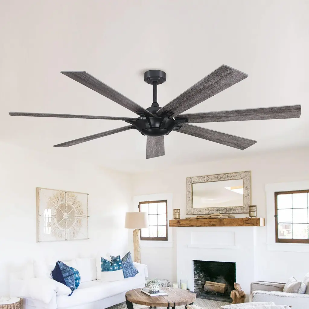 This fan is equipped with a powerful reversible DC motor, Max 5707 CFM, built-in copper winding silent motor for durability. Double-sided fan blades. The perfect expression for bedrooms, living rooms, dining rooms, and guest rooms. Reversible motors run in winter to help spin warm air and reduce energy costs. The remote control makes it easy to change the fan speed from a distance. It has a timing control and 6-speed options. Automatically turn off the fan within 8 hours of sleep, saving power and money. Easy to install, includes all mounting hardware and instructions for quick and easy installation. Suitable for ceilings with an inclination angle of fewer than 15 degrees.