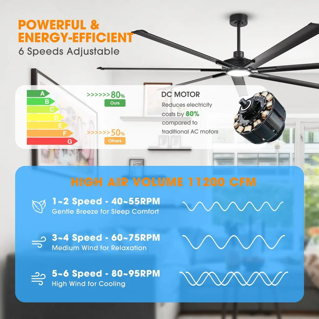 84 Inch 100 Inch Padus Black Large Size Ceiling Fan With Dimmable Lighting And Remote Control - 100 Inch / Black