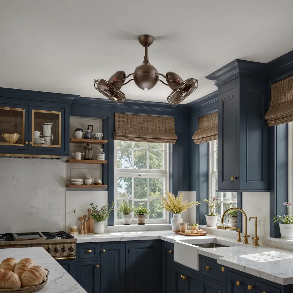 The Acqua rotational ceiling fan is thoughtfully designed to resemble the molecular structure of water, the Earth's most precious resource. The Acqua offers fluid lines and quiet axial rotation. The motor heads can be infinitely positioned in 180-degree arcs for optimum air movement; the greater the angles of the motors to the horizontal support rods (up or down), the faster the axial rotation. A slow, controlled axial rotation is achieved by both motor head position and fan blade speed. Matthews rotational fans circulate heat and air-conditioning more efficiently than traditional paddle fans. Features