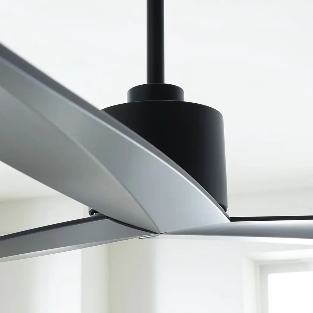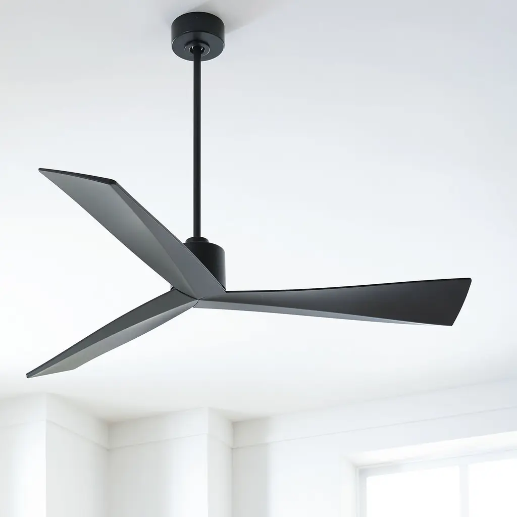 With three sleek sloped blades and a matte black finish, this ceiling fan is sculptural without calling undue attention to itself. The 10-degree pitch of the blades and the DC motor provide optimal airflow. Energy Star-rated, the fan has six speeds, and its direction can be reversed, so that you can use it in the winter to recirculate heat and make rooms toastier. Comes with a hand-held remote.