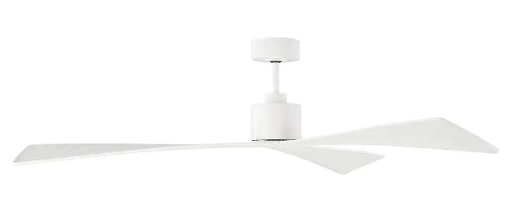 With three sleek sloped blades and a matte white finish, this ceiling fan is sculptural without calling undue attention to itself. The 10-degree pitch of the blades and the DC motor provide optimal airflow. Energy Star-rated, the fan has six speeds, and its direction can be reversed, so that you can use it in the winter to recirculate heat and make rooms toastier. Comes with a hand-held remote.