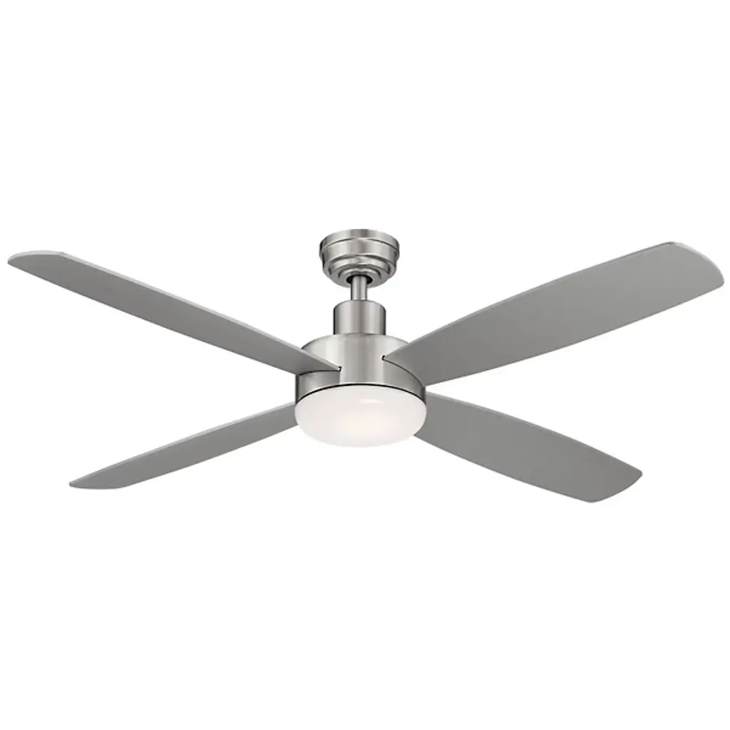 The Aeris Job LED Ceiling Fan from Wind River brings mid-century modern elegance to your space. Crafted with care using high-quality metal and wood, this fan is a cooling solution and a means of illumination, courtesy of its integrated LED and frosted opal lens. Featuring 4 reversible blades, Aeris operates at 3 fan speeds. The handheld control offers convenience. Your fan is sloped-ceiling adaptable and is suited for a variety of interiors.