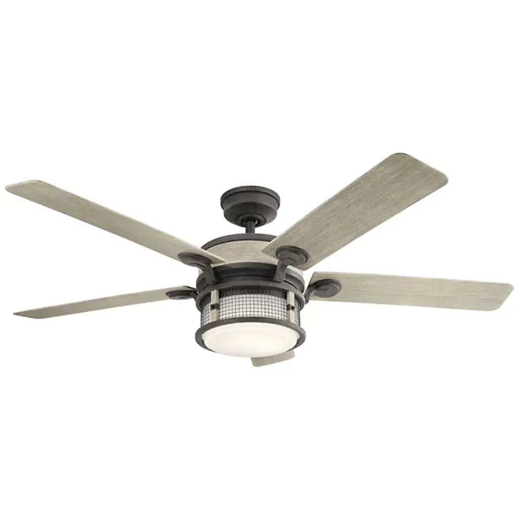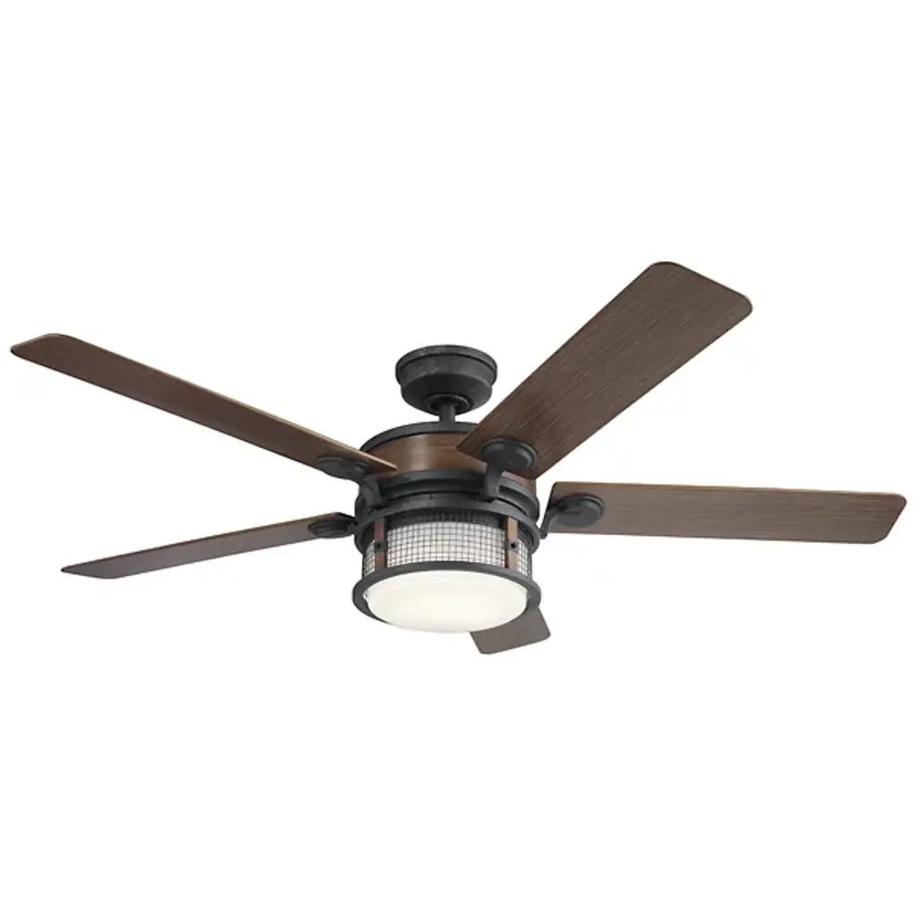 Sleek and modern with a touch of rustic. The Kichler Ahrendale LED Ceiling Fan offers home and commercial spaces a versatile cooling system that looks great in contemporary spaces. With a large 60” blade diameter, this fan powers through 3 speeds of low, medium, or high speeds. Features a protective mesh cage around the LED light kit, and includes a wall control for ease of use.