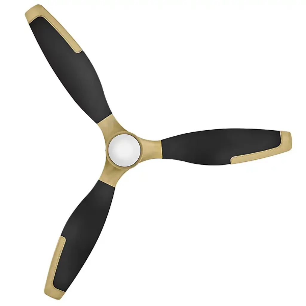 The Aileron Indoor/Outdoor Smart LED Ceiling Fan from Hinkley is a stunning fusion of industrial design and outdoor functionality. This fan is crafted from premium steel and wood, with a gorgeous finish that enhances its visual appeal and complements its blades, creating an eye-catching presentation. The fan features 3 high-performance blades powered by a DC motor, offering 6 forward and reverse speeds for optimal comfort throughout the year. The white polycarbonate shade diffuses light beautifully, housing an integrated LED. It is designed for versatility and includes a wall/handheld combo control complete with a reverse switch.