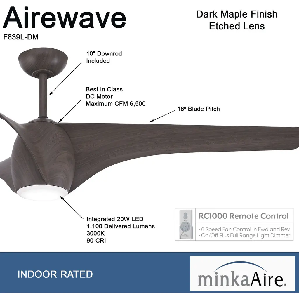 This 1 light Ceiling Fan from the Airewave collection by Minka-Aire will enhance your home with a perfect mix of form and function. The features include a Dark Maple finish applied by experts. This item qualifies for free shipping!