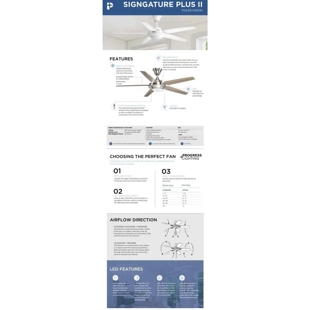 Airpro Signature Plus Ii 54 Inch Brushed Nickel With Driftwood/silver Blades Ceiling Fan, Progress Led