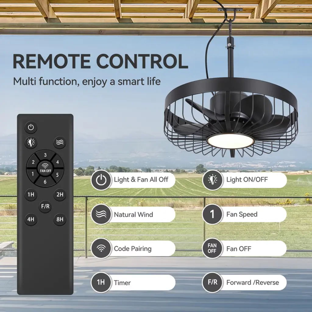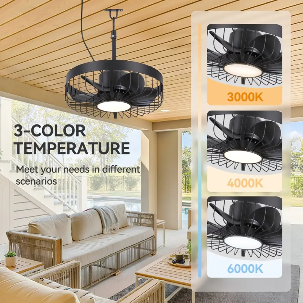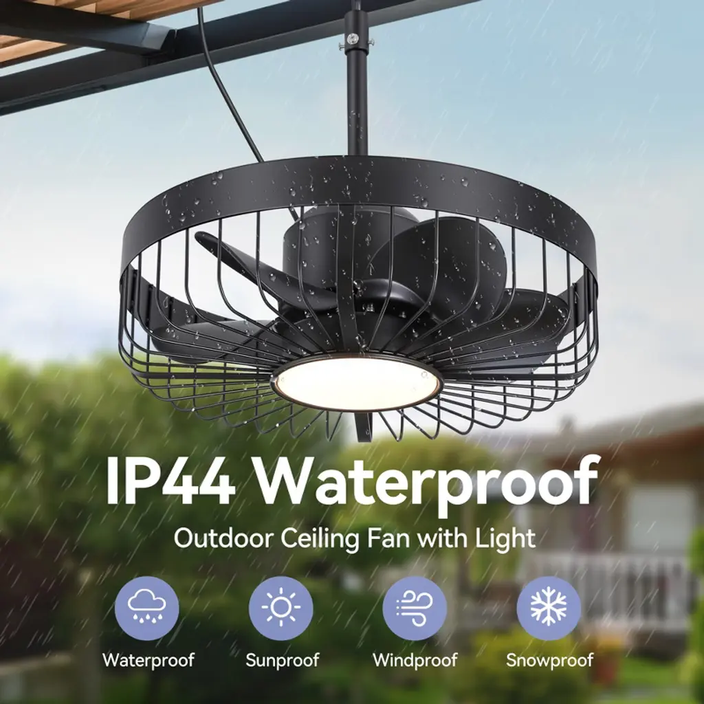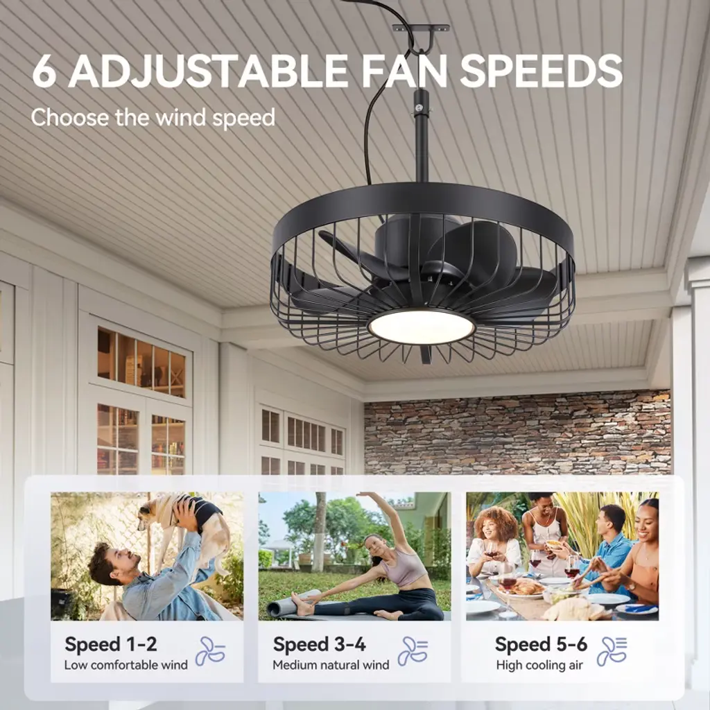 Airsurfer 19" 6 Speed Black Waterproof Ceiling Fan With 3 Color Temperatures Led Light And Remote,5 Black Abs Blades,light With Memory Function