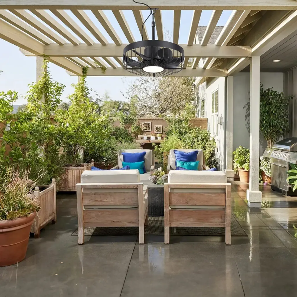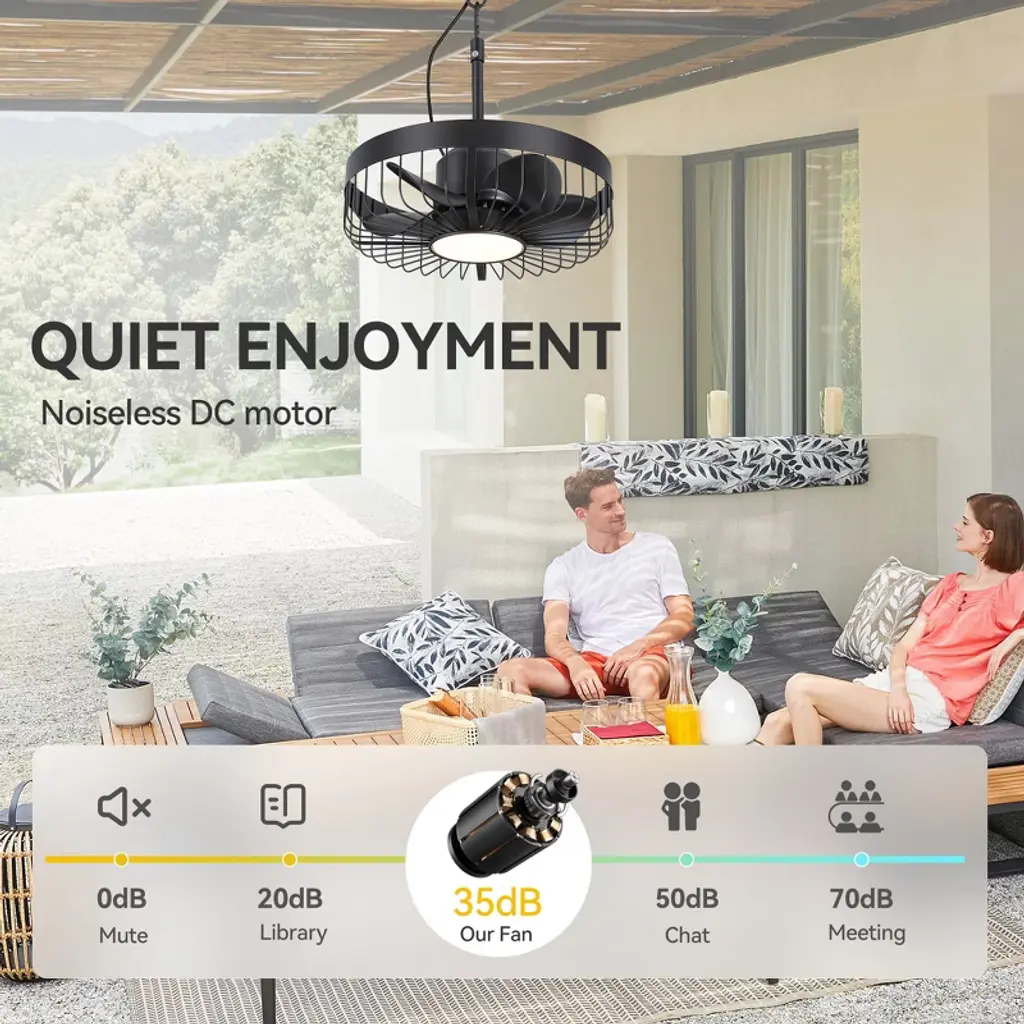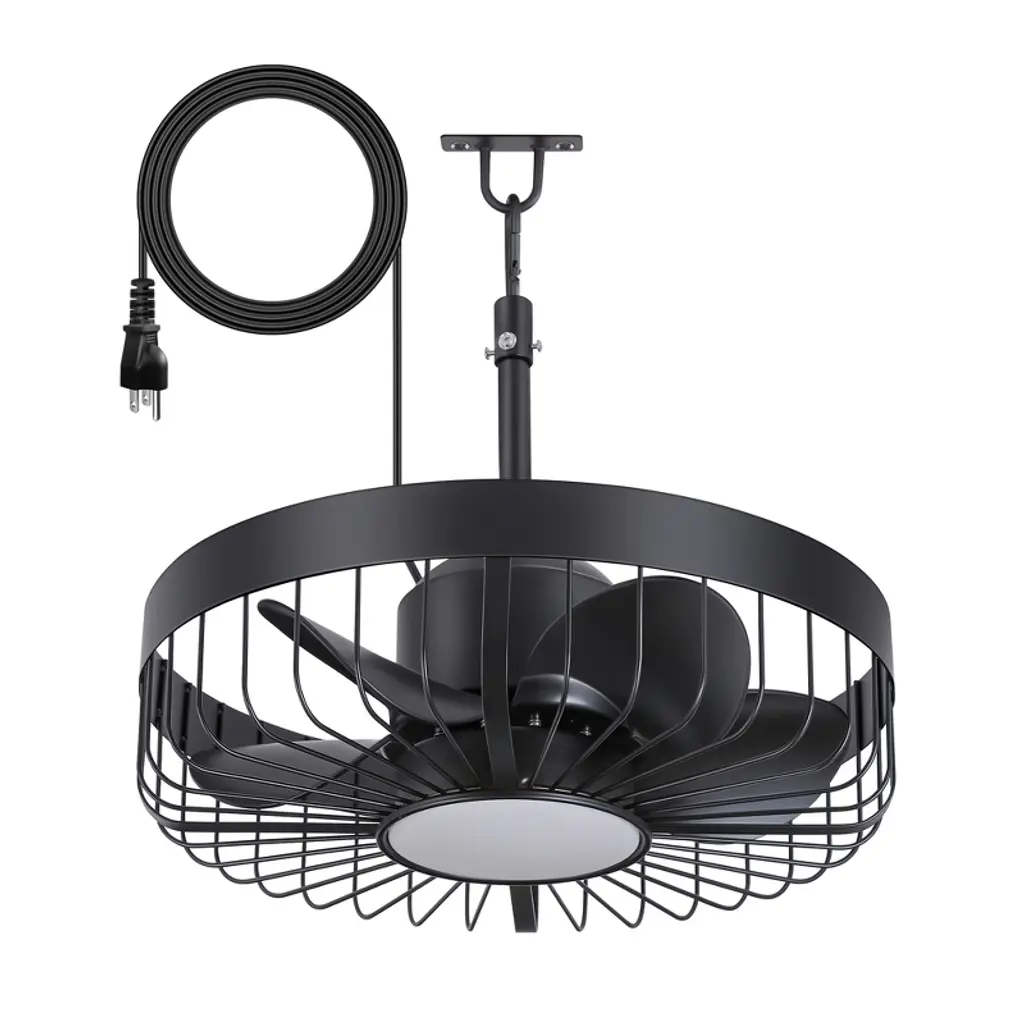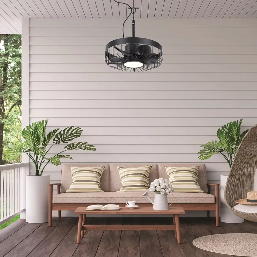 Airsurfer 19" 6 Speed Black Waterproof Ceiling Fan With 3 Color Temperatures Led Light And Remote,5 Black Abs Blades,light With Memory Function