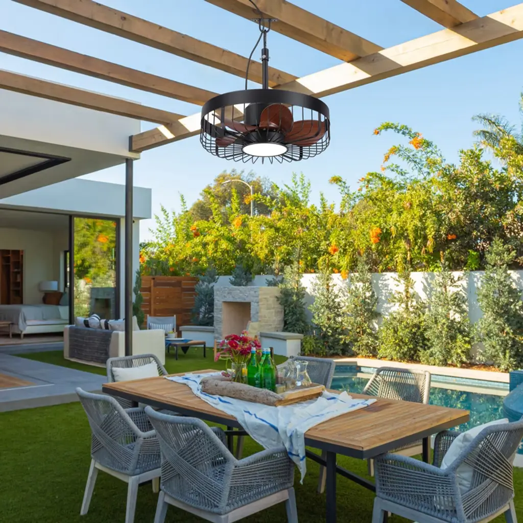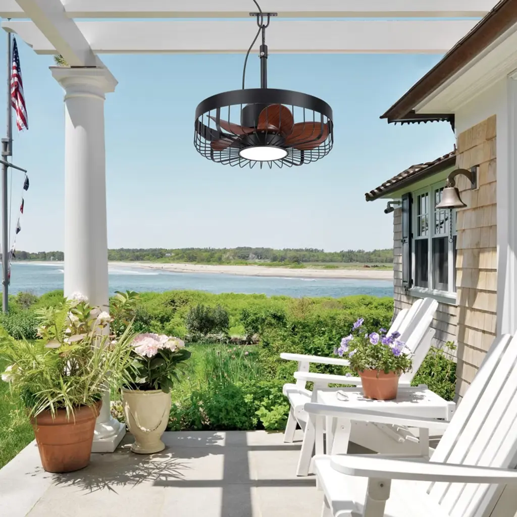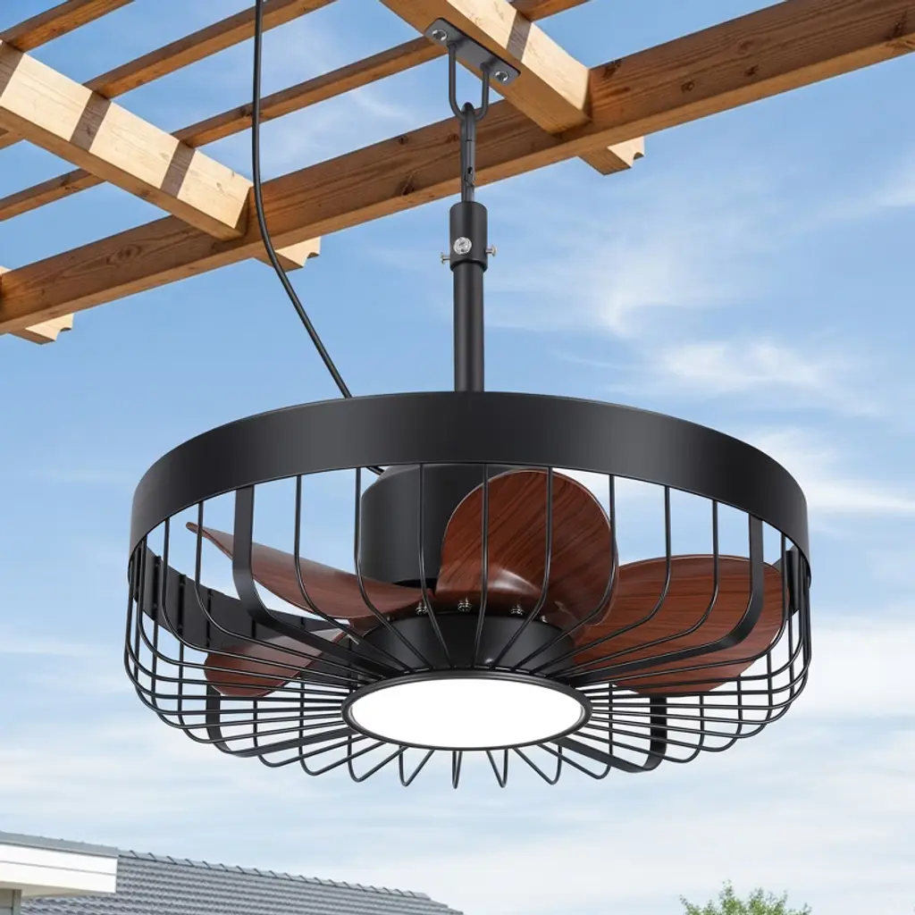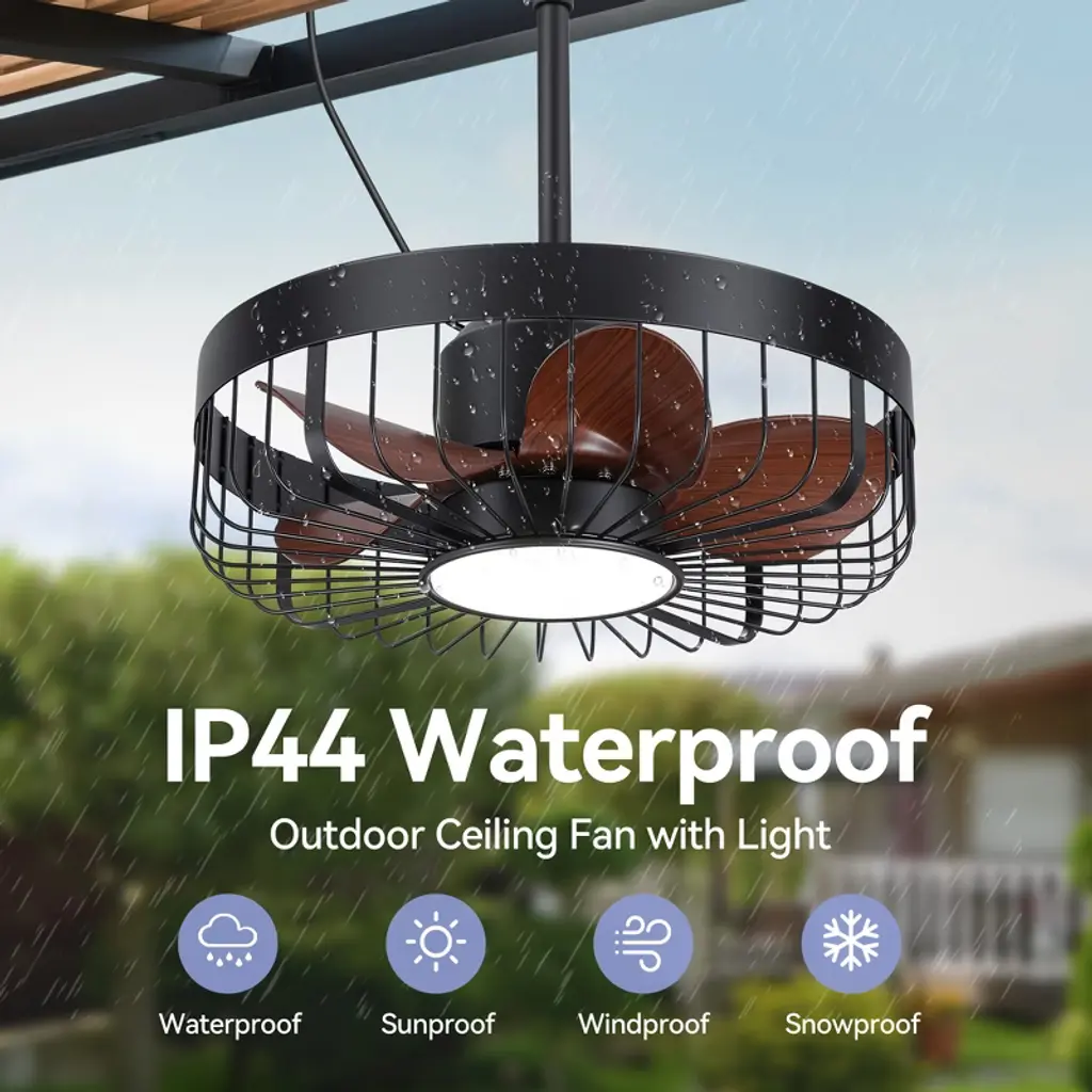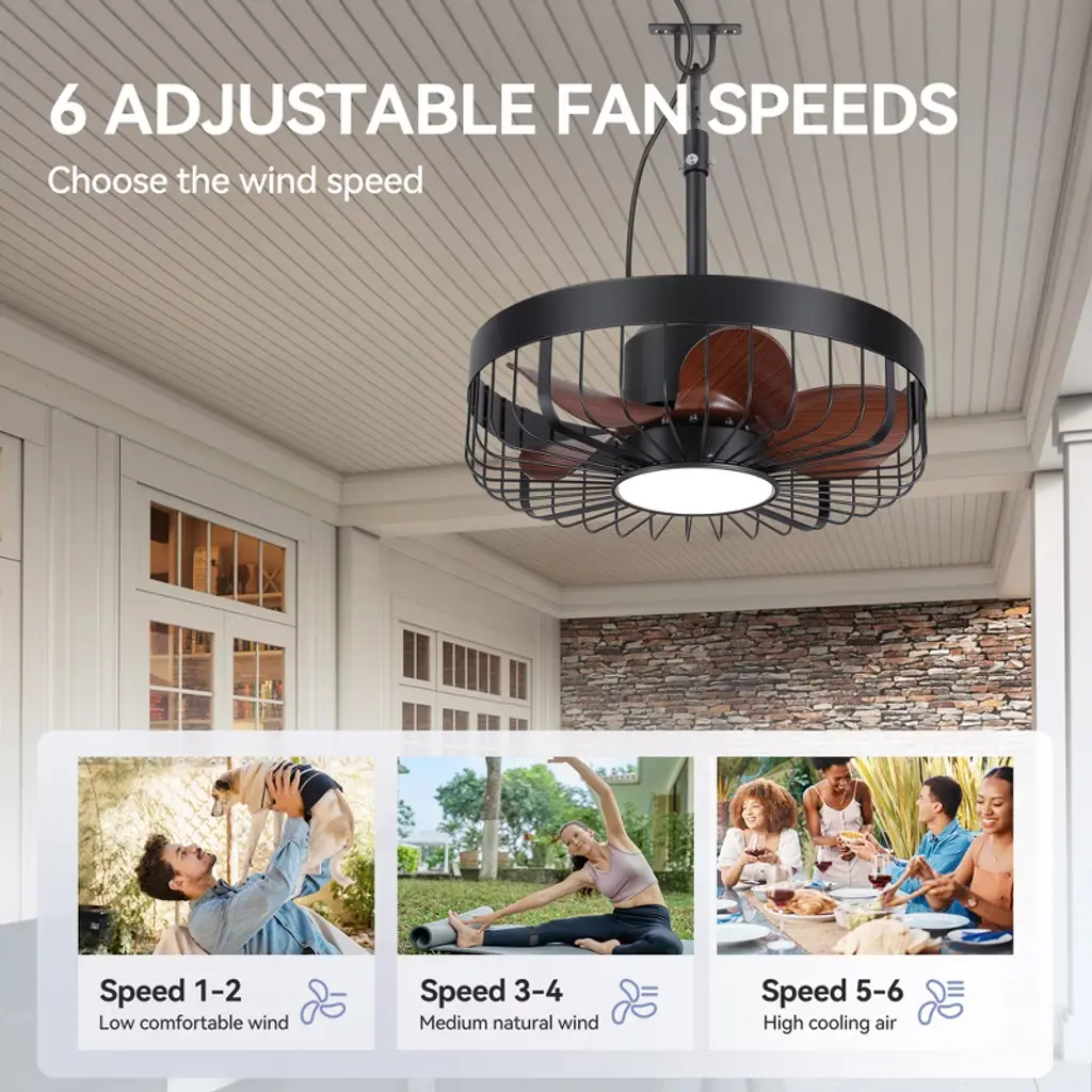 Airsurfer 19" 6 Speed Brown Waterproof Ceiling Fan With 3 Color Temperatures Led Light And Remote,5 Wood Color Abs Blades,light With Memory Function