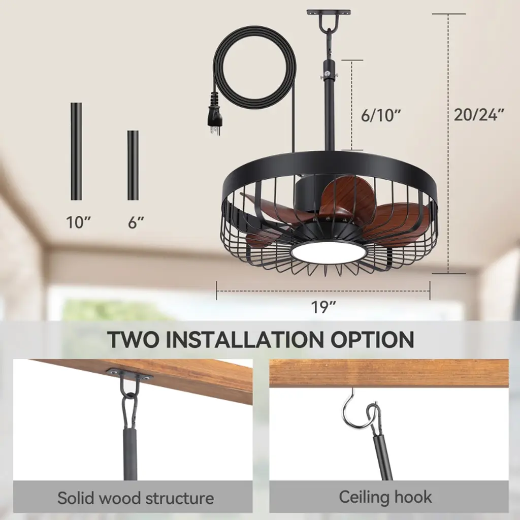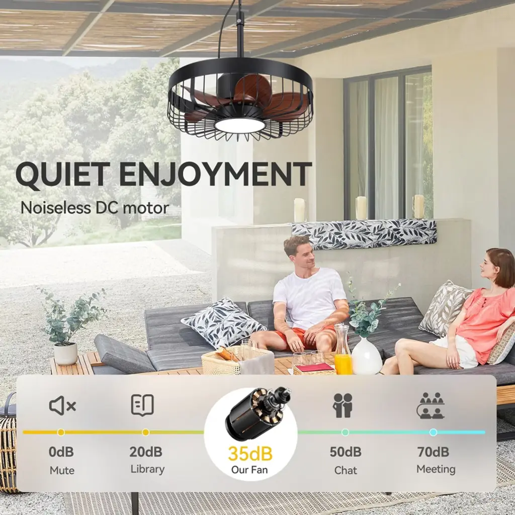 The Airsurfer 19 inch ceiling fan features a brown surface and black blades, combining elegant appearance with practical performance, making it perfect for modern spaces. Equipped with color changing integrated LED lighting, with 3 color temperatures to choose from, you can adjust the lighting according to your mood. The 5-blade design ensures efficient airflow, and the included remote control allows for easy control of fan speed and lighting. Very suitable for small rooms or spaces with modern aesthetics.