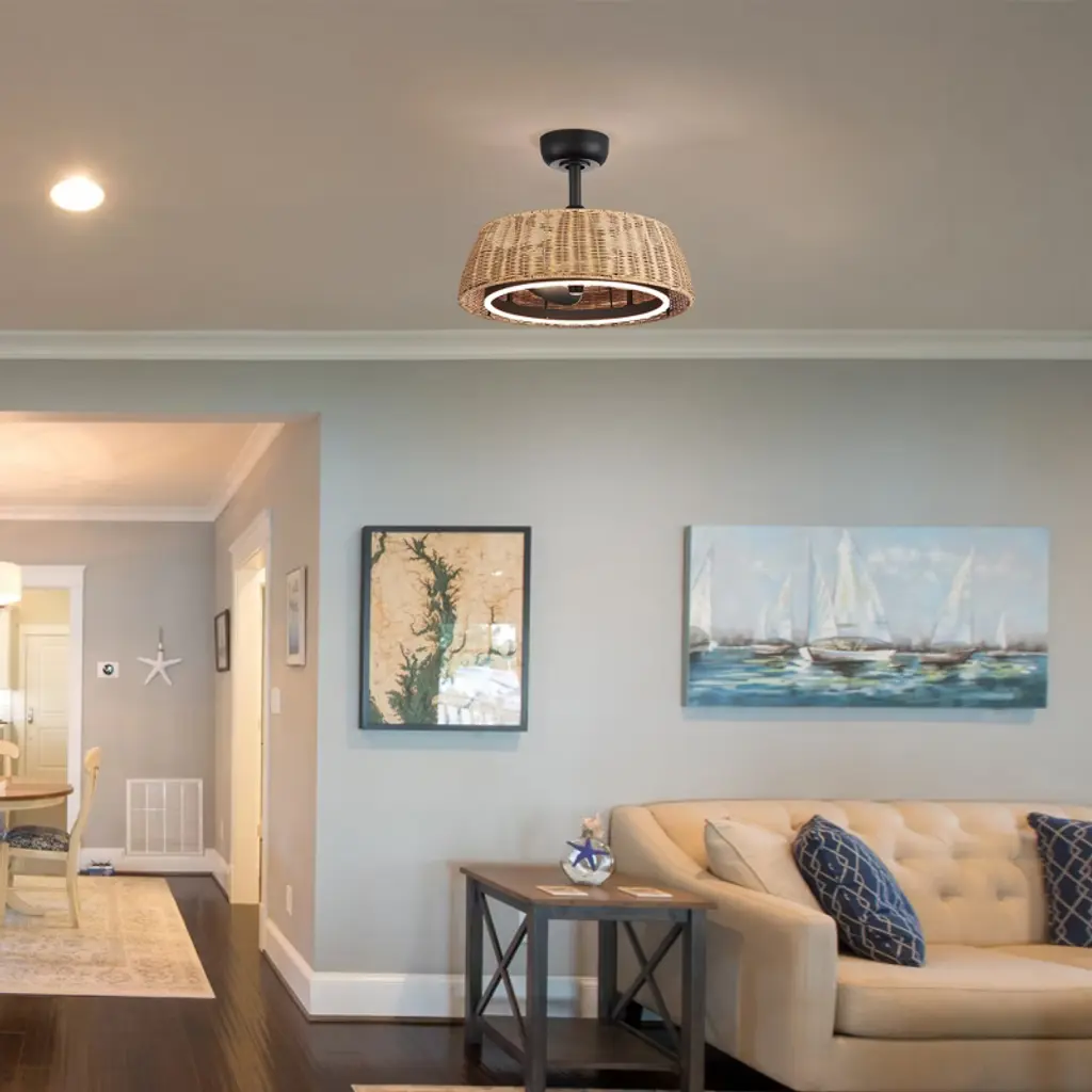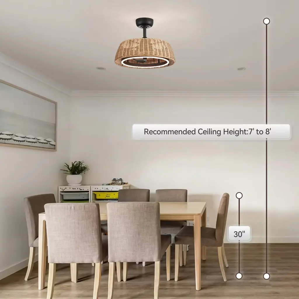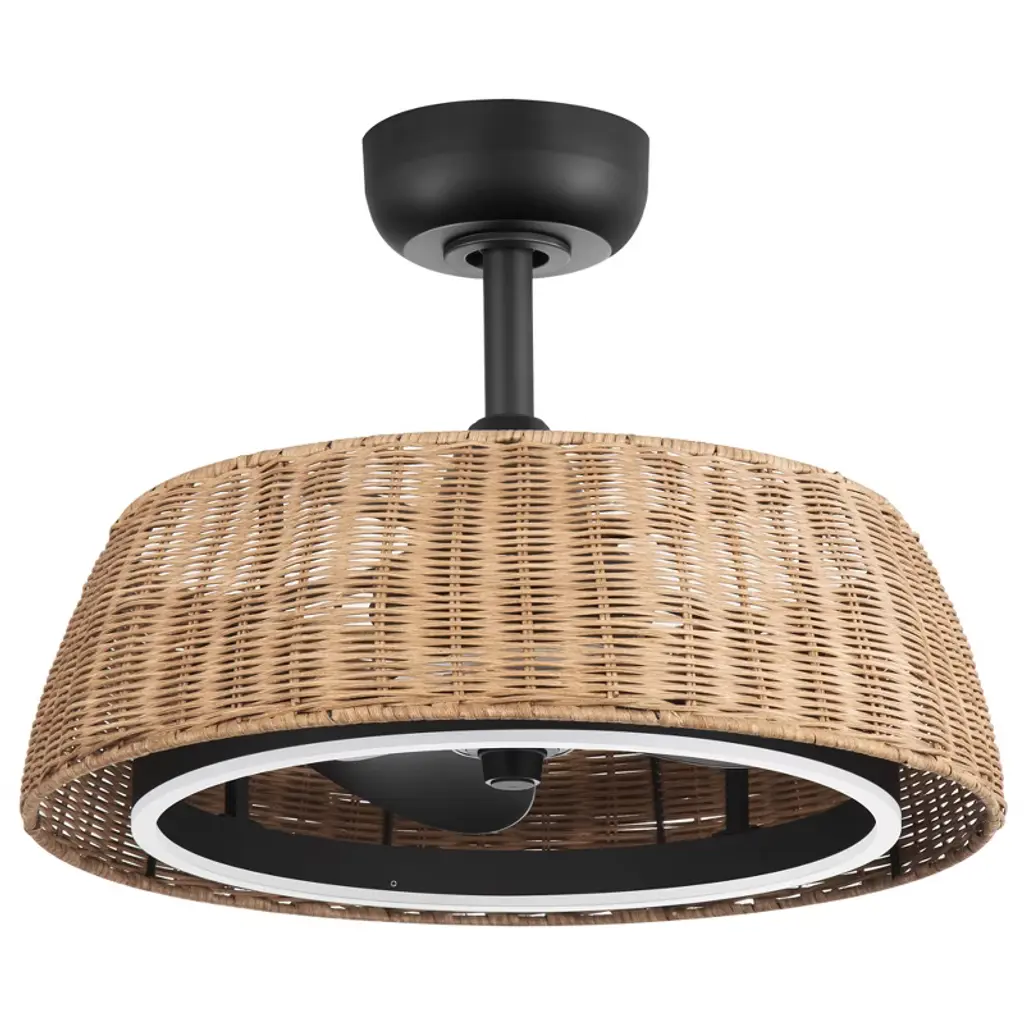 Airsurfer 20" Ceiling Fan With Remote, 6-speed Reversible Dc Motor, Quiet Led Light, Timer, Indoor Use, Stylish Rattan Lampshade Design