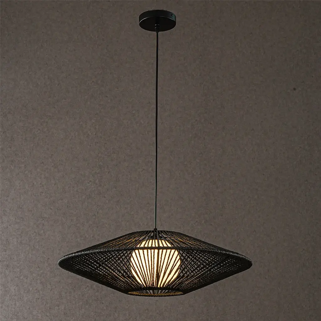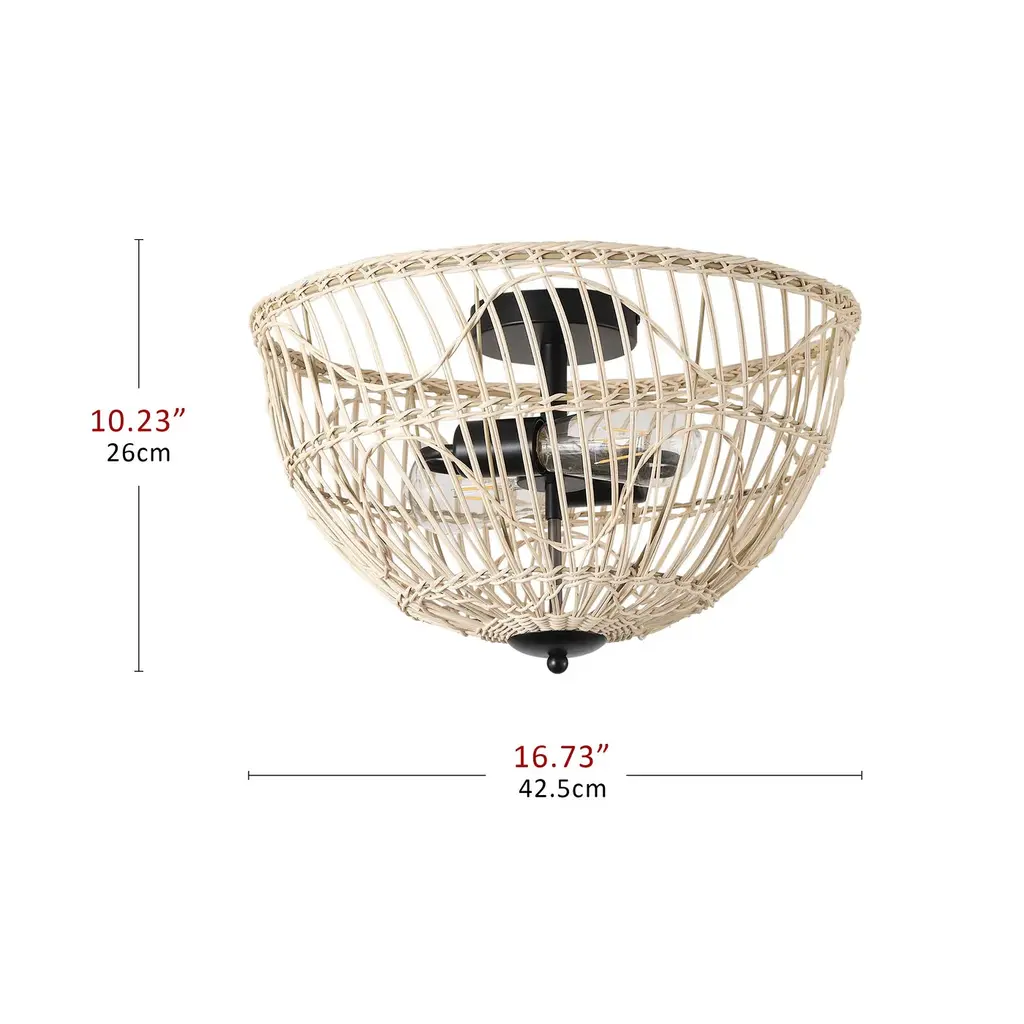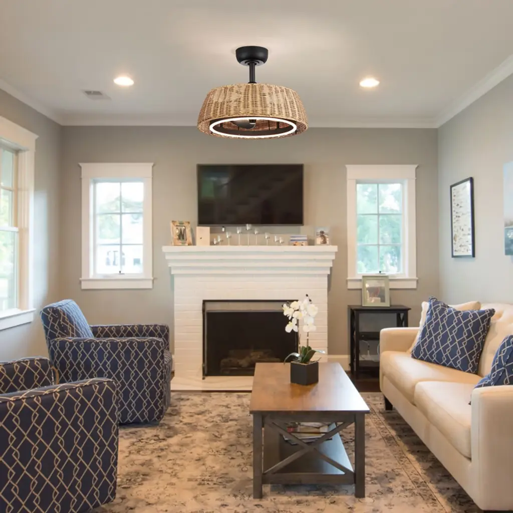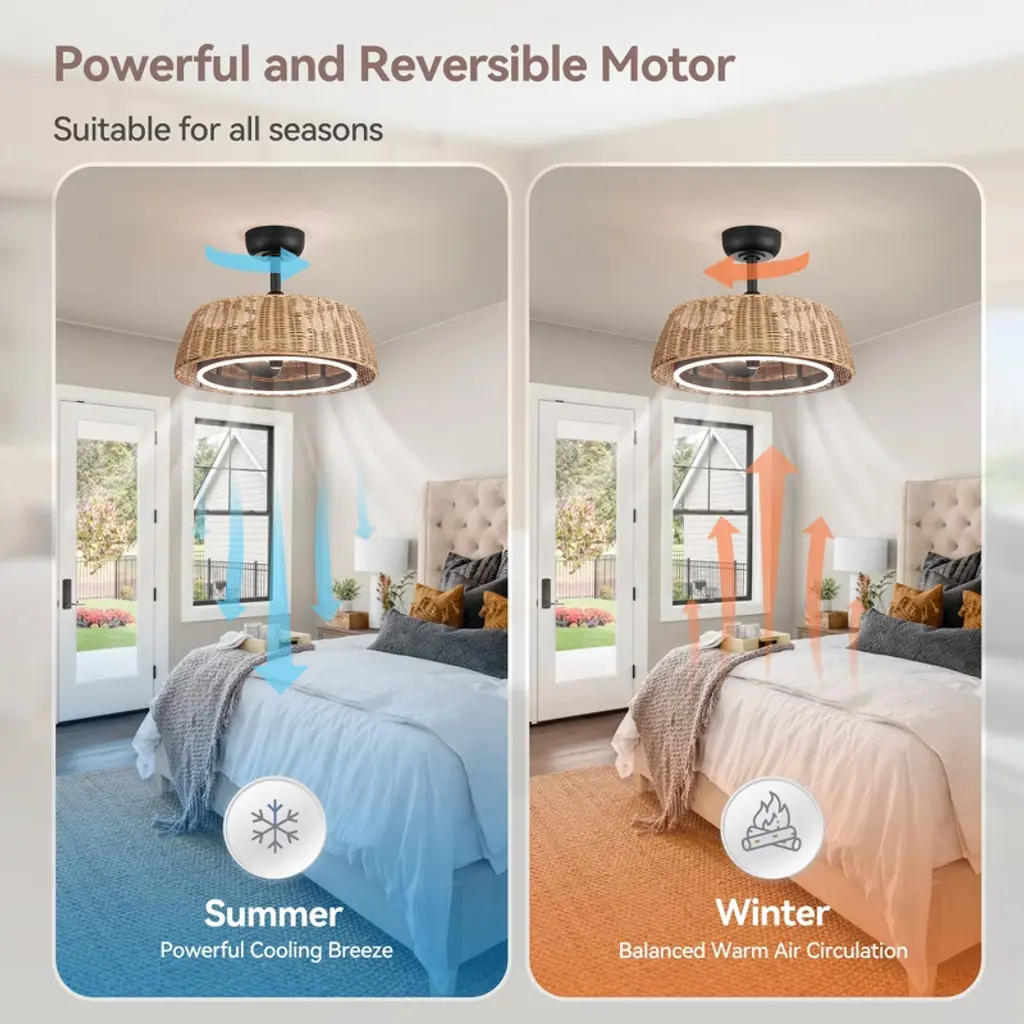Airsurfer 20" Ceiling Fan With Remote, 6-speed Reversible Dc Motor, Quiet Led Light, Timer, Indoor Use, Stylish Rattan Lampshade Design