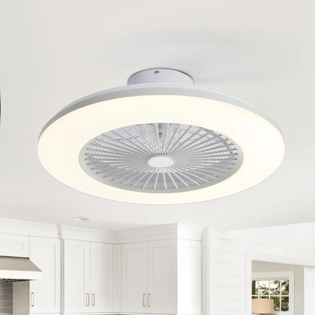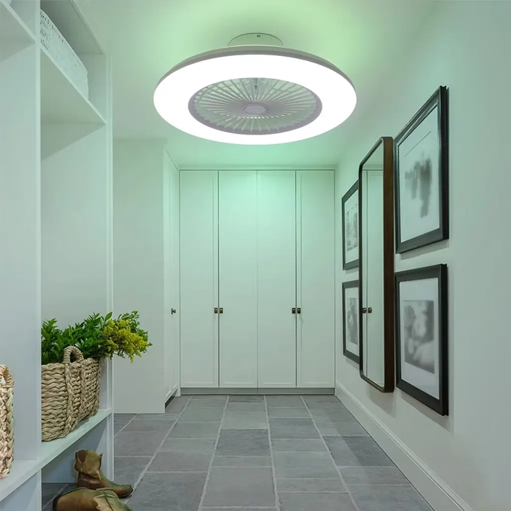 This 22'' modern bladeless ceiling fan with RGB light has a powerful motor, which brings powerful wind but is smooth. RGB LED light can be controled by the remote or application . Modern embedded ceiling fans are equipped with low-noise wind motors, which can keep you and your family away from any noise interference, create a comfortable and quiet living environment, and improve sleep quality, LED lights are energy-saving and environmentally friendly, with low power consumption, and can save large electricity bills. Plus, it can be compatible with a remote control and a mobile APP to control the chandelier ceiling fan from anywhere in the room. Applicable space: Living room dining room kitchen study bedroom small bedroom meeting room small living room others.