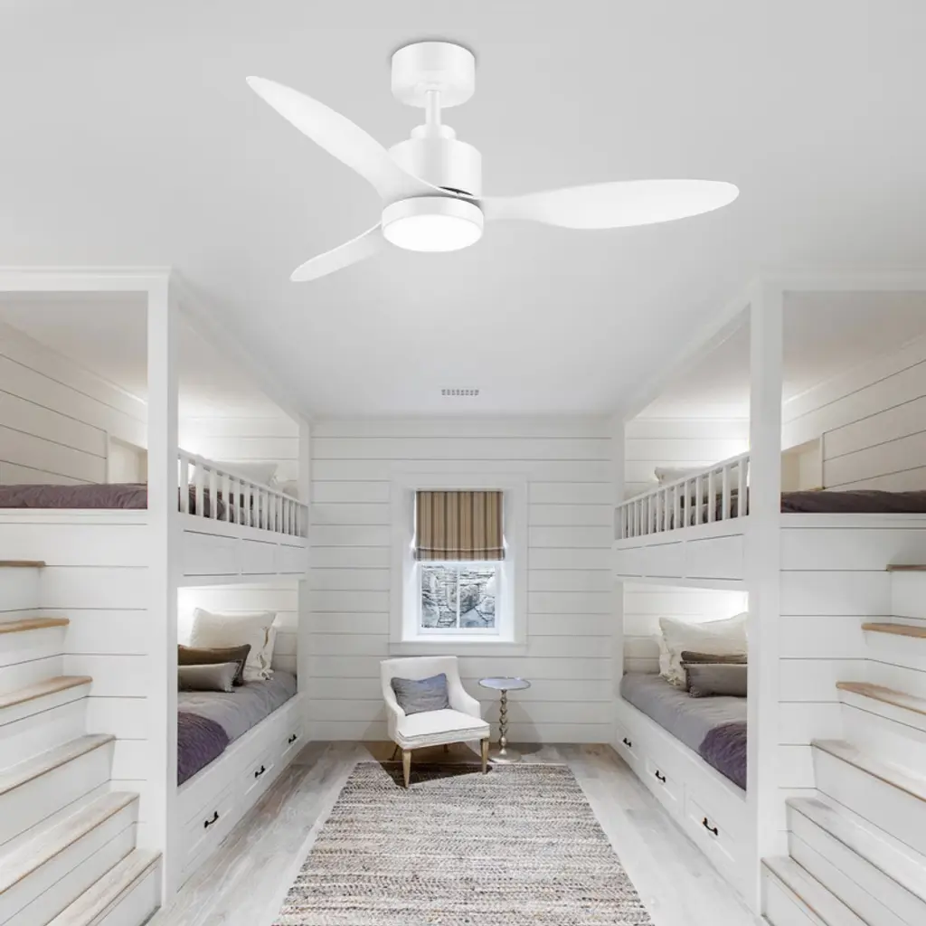 This 42-inch 3-blade LED propeller ceiling fan with dimmable LED light kit included keeps your space cool, bright,and stylish.It is a soft modern masterpiece perfect for your standard indoor living spaces.