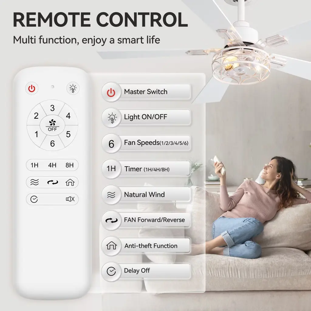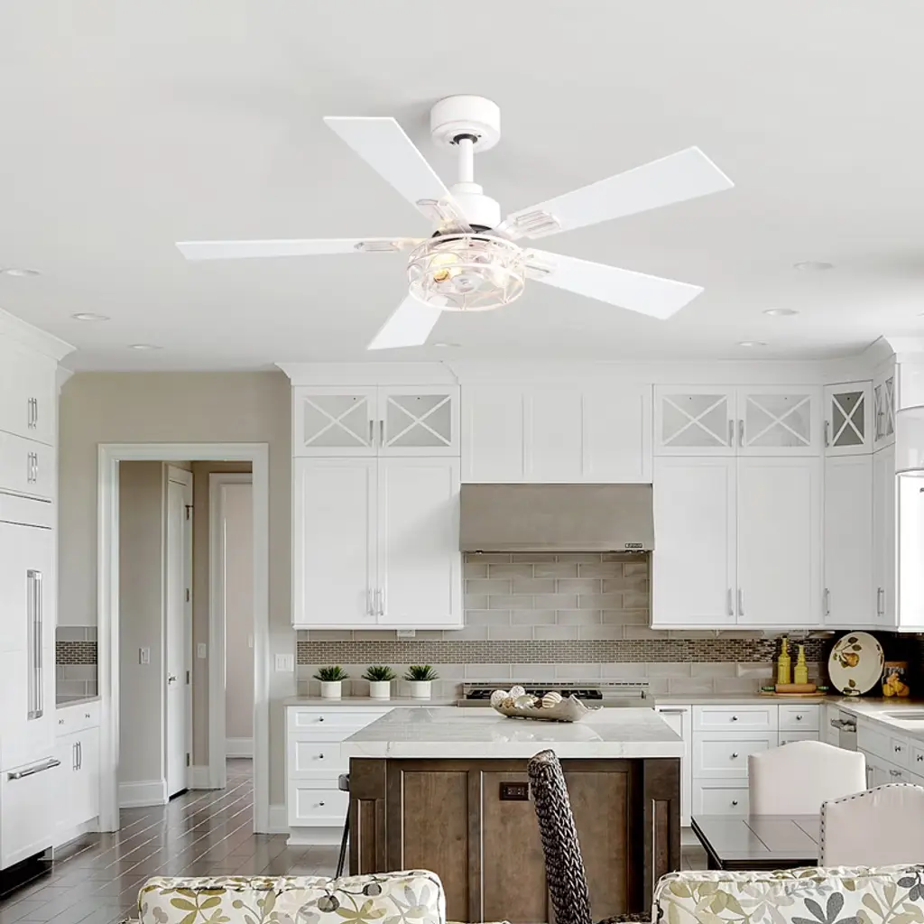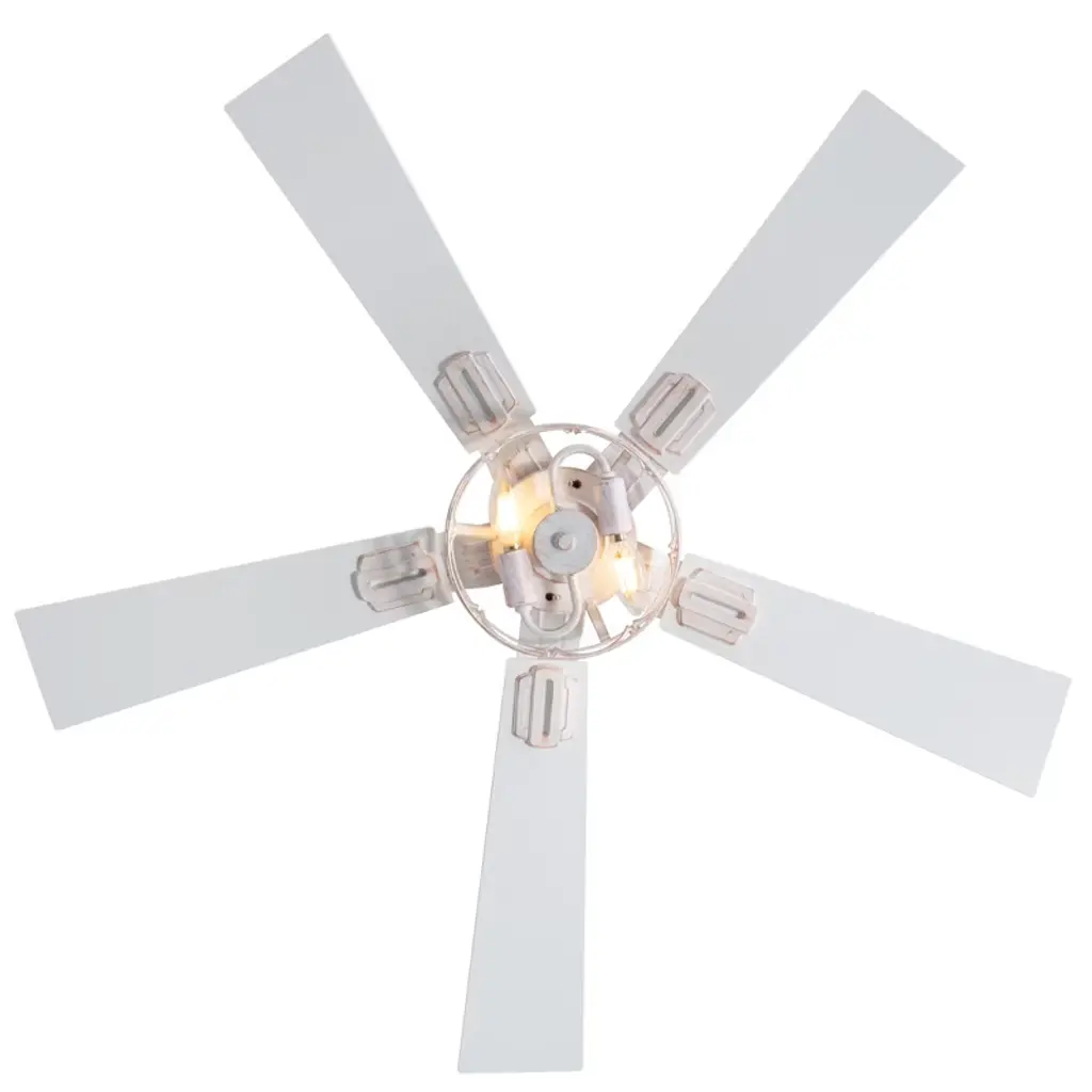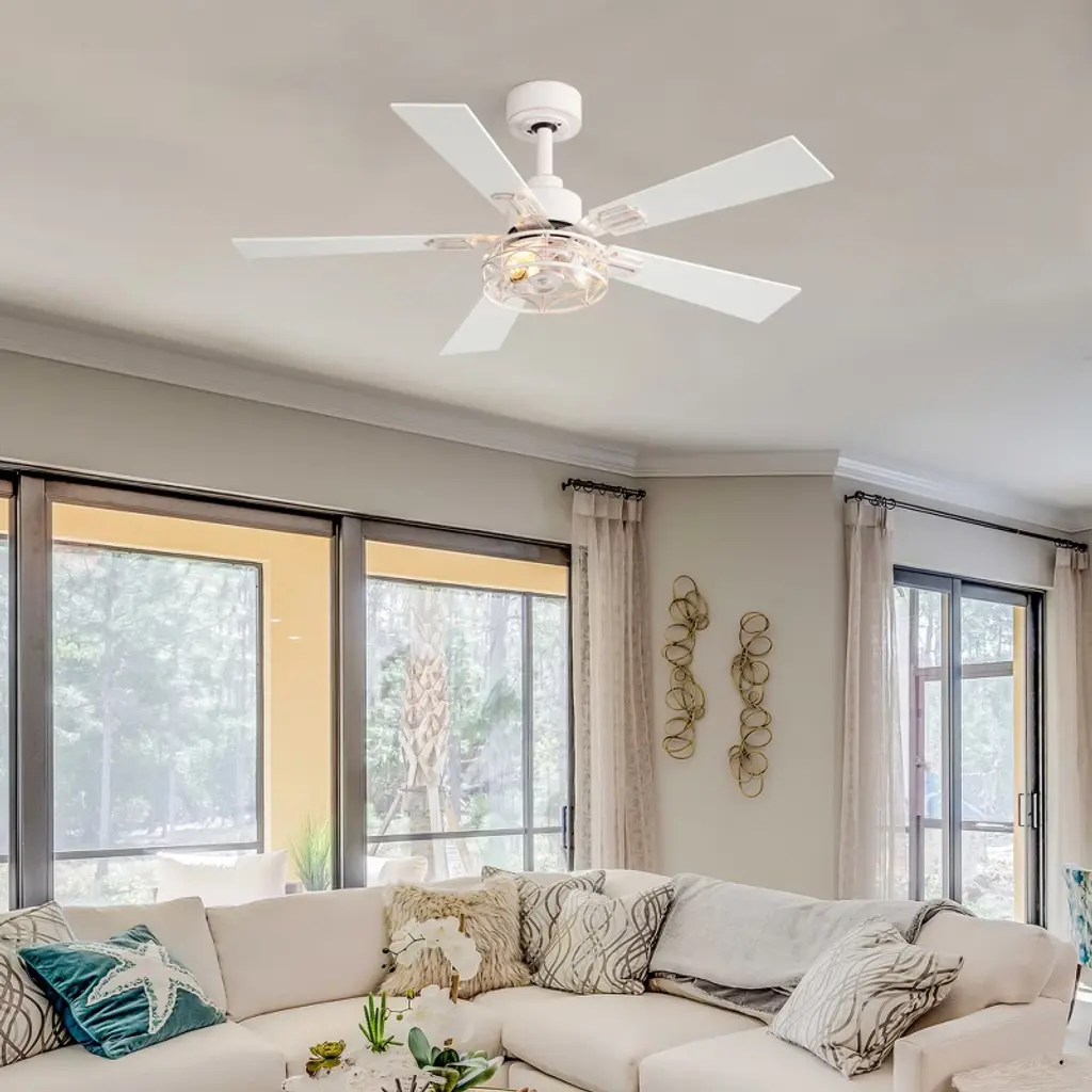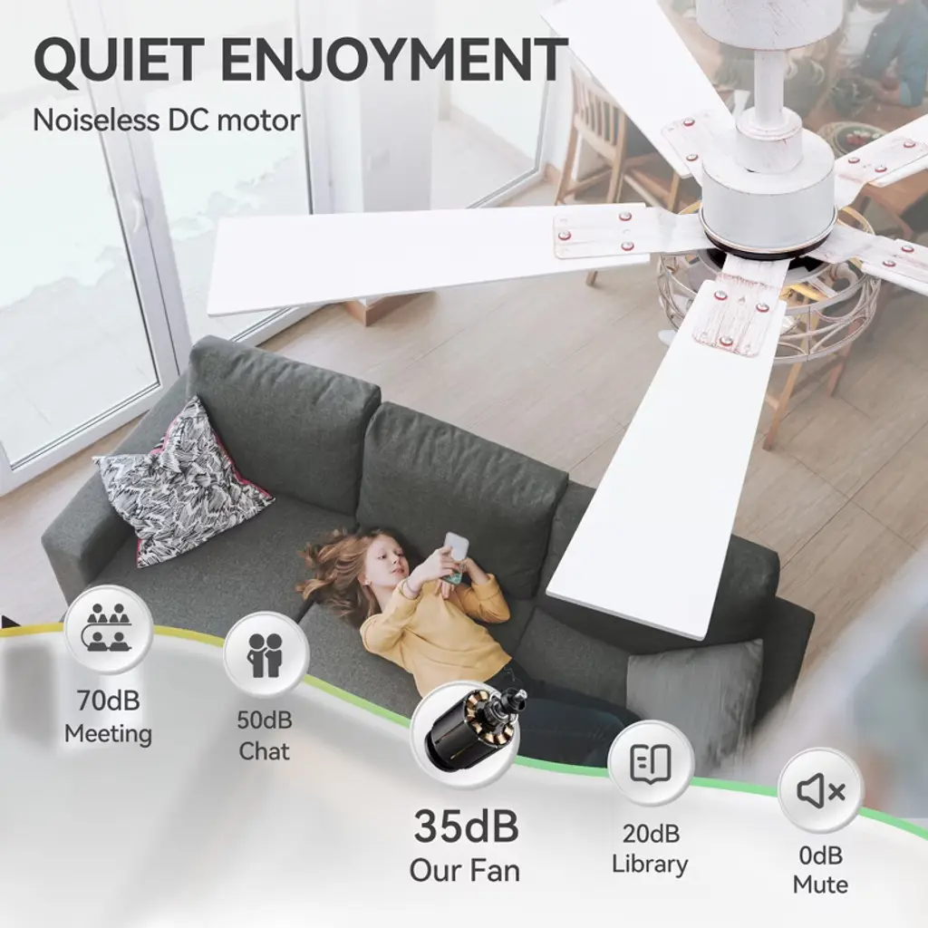 Elegant Function Meets Compact Power — Modern 42" Ceiling Fan in Brushed White Gold. Bring a fresh, modern upgrade to your space with this 42-inch ceiling fan in a sophisticated brushed white gold finish. Designed for smaller rooms, this fan features five sleek plywood blades for balanced airflow and stylish presence. The reversible, whisper-quiet motor provides year-round comfort — offering cool breezes in summer and warm air circulation in winter.Compatible with two E12 base bulbs (not included), the fan gives you flexibility in lighting style and brightness. The remote control allows for easy operation, while the light memory function ensures your preferred brightness returns with every use.