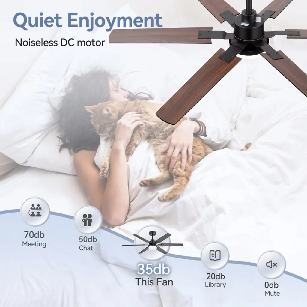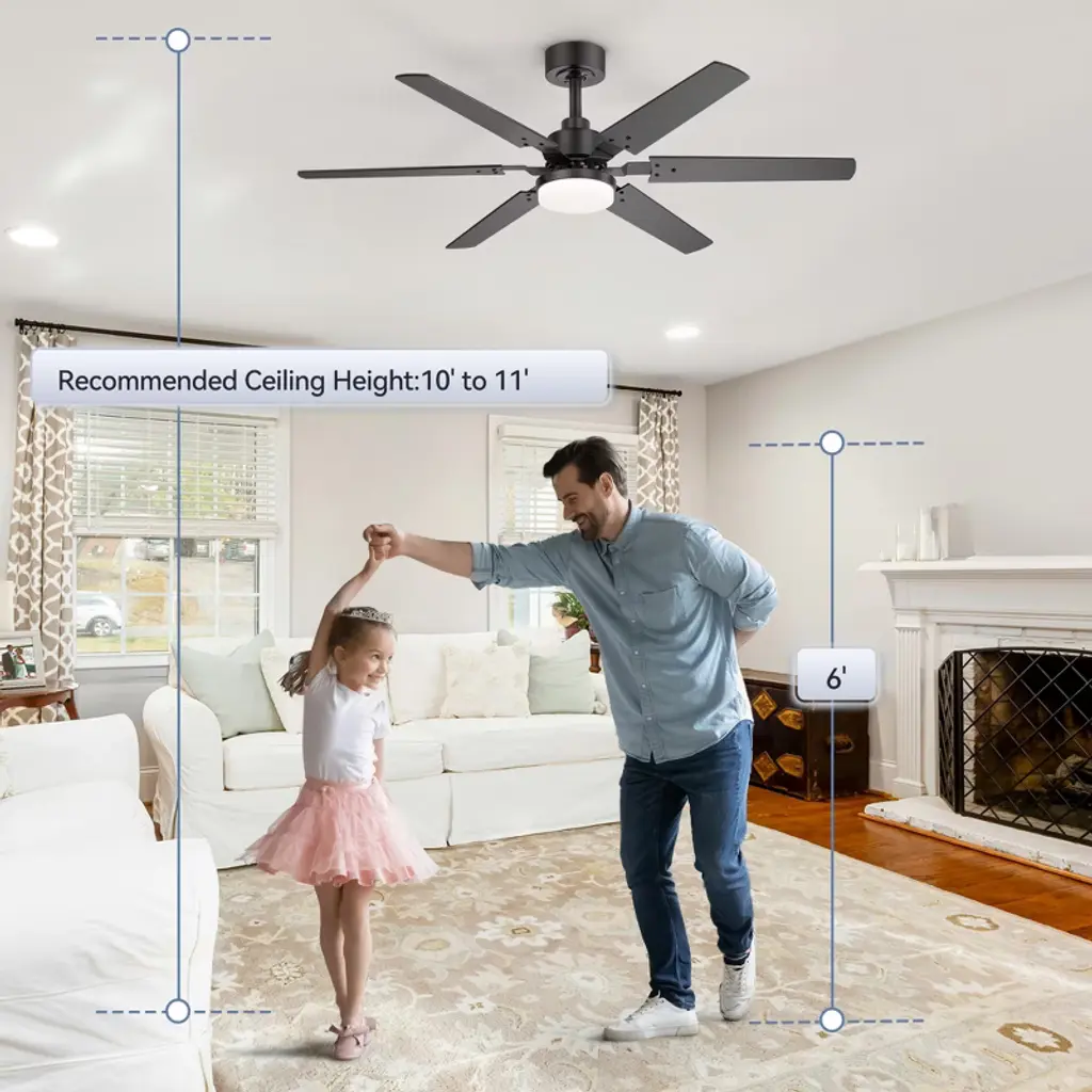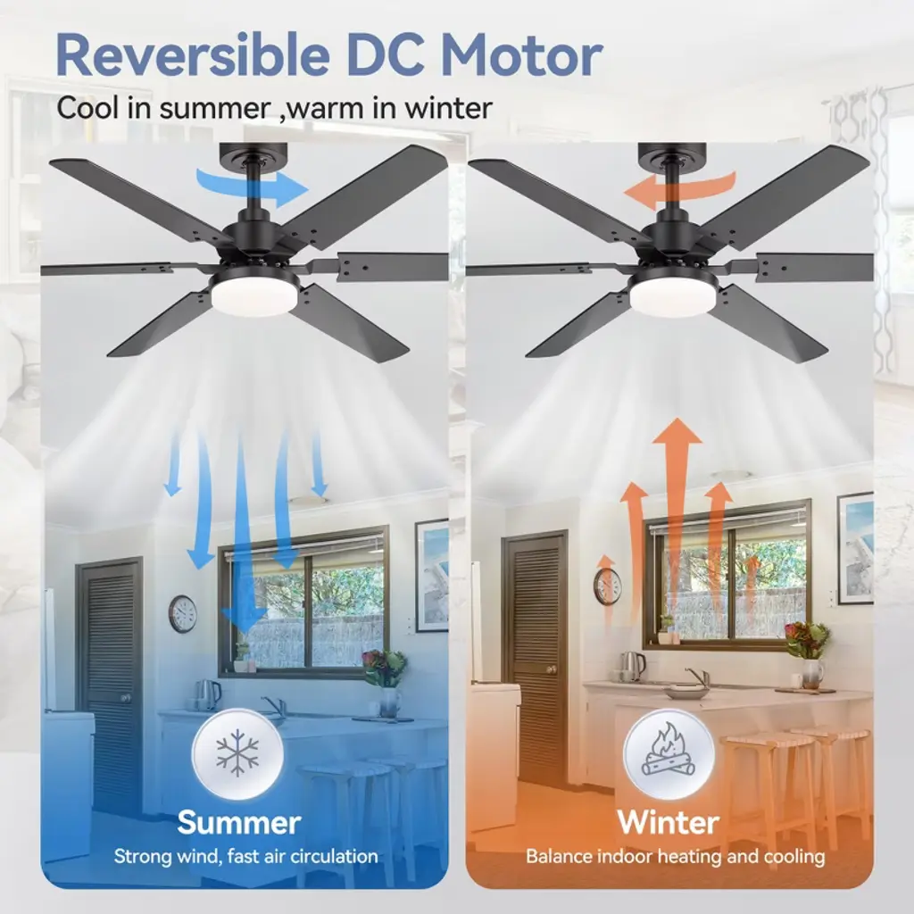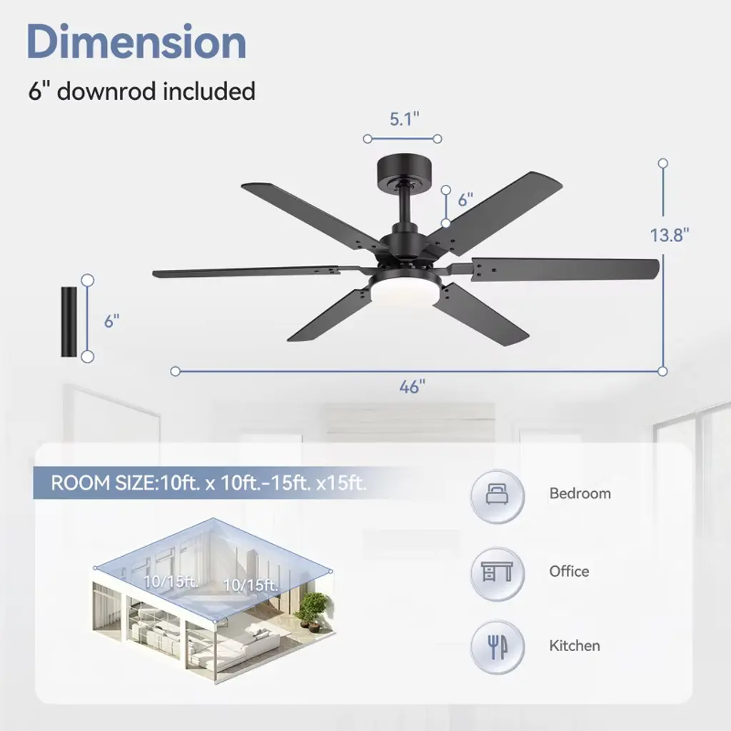 Upgrade your home with this 46-inch ceiling fan, designed to blend modern style with everyday practicality. Featuring 6 black plywood blades and a sleek brushed white gold finish, this fan adds a sophisticated touch to any room. The whisper-quiet, reversible motor ensures year-round comfort, providing cooling air during the summer and helping to circulate warm air in winter. The integrated 15W dimmable LED light lets you customize your lighting to your desired brightness and ambiance. The convenient remote control makes operation effortless, while the memory function automatically restores your preferred settings after each use. Perfect for medium-sized rooms, bedrooms, and dining areas, this ceiling fan combines performance, elegance, and ease of use.