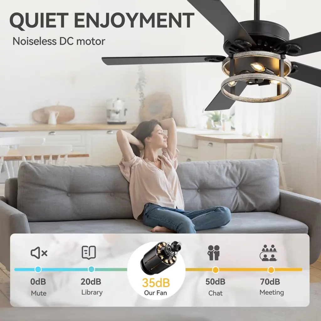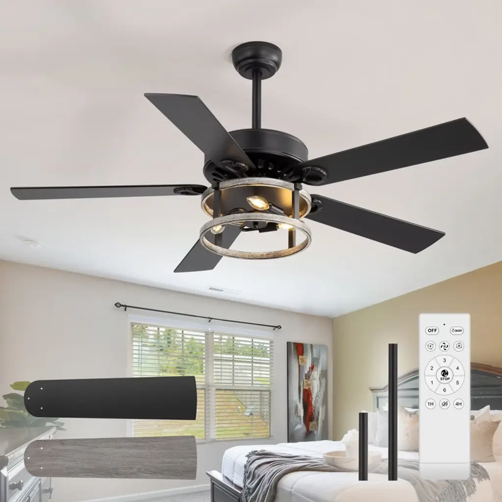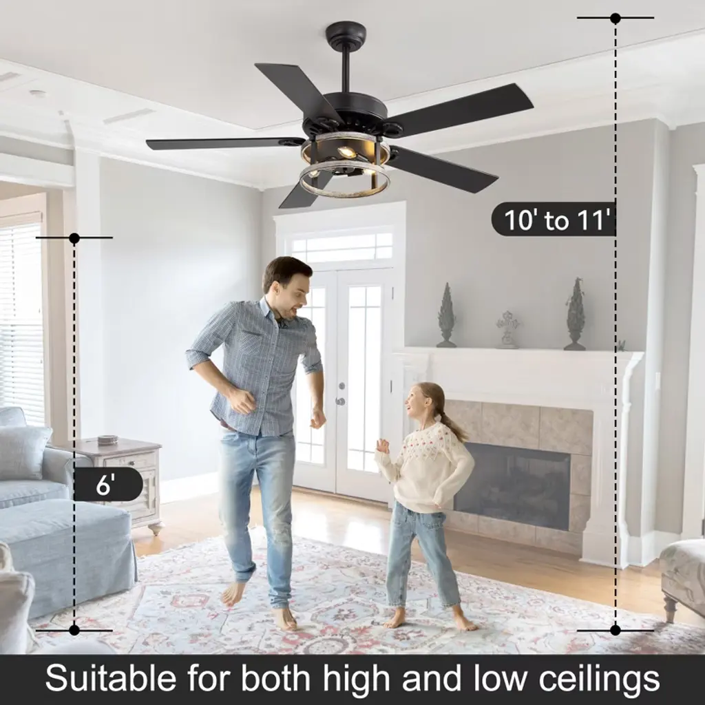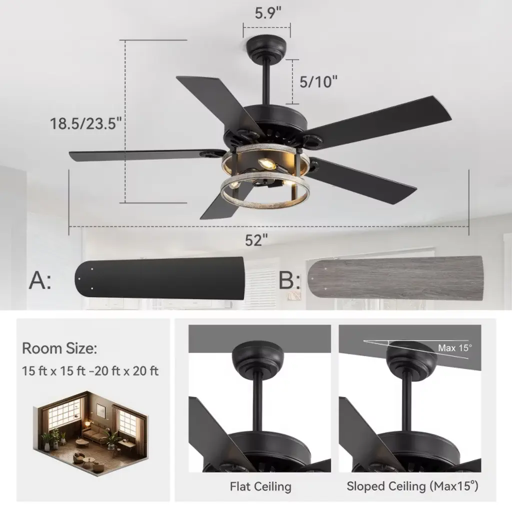 Practical functionality combined with compact power -52 inch Matte Black ceiling fan. This 52 inch ceiling fan features an exquisite Matte Black body, bringing a fresh and modern upgrade to your space. This fan is designed specifically for smaller rooms and features five smooth plywood blades for balanced airflow and a stylish appearance. The reversible silent motor provides year-round comfort, providing cool breezes in summer and warm air circulation in winter. Compatible with three E13 bulb bases(bulb not included), the fan provides flexibility in lighting style and brightness. The remote control is easy to operate, and the light memory function ensures that you can restore the brightness you like every time you use it.