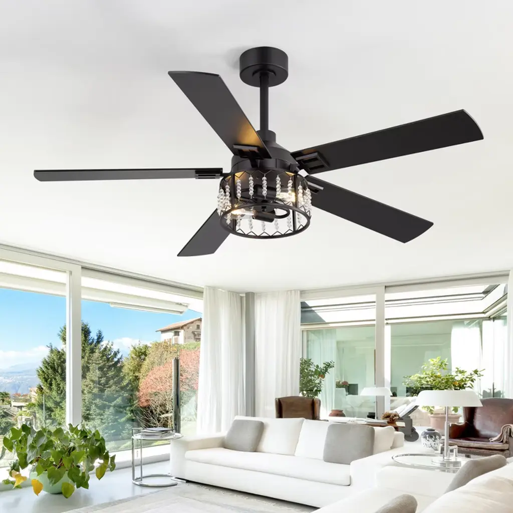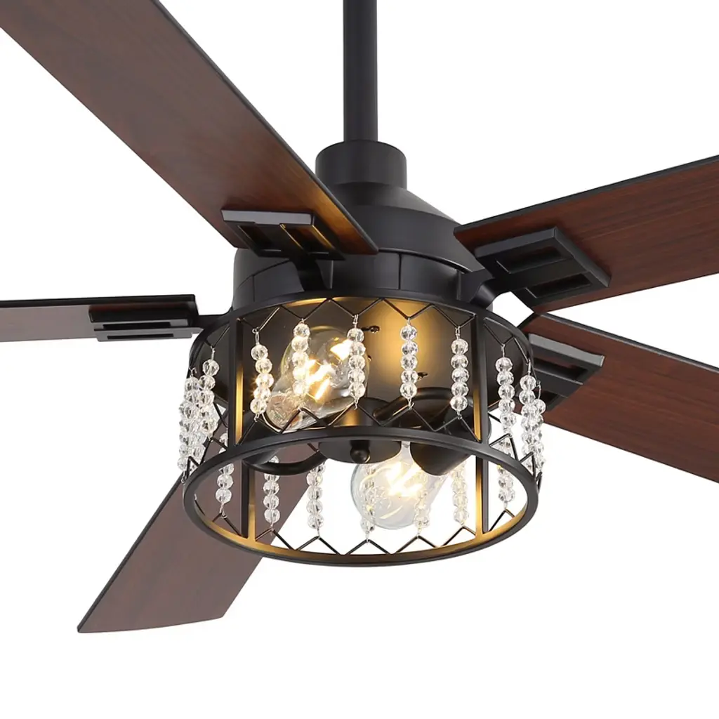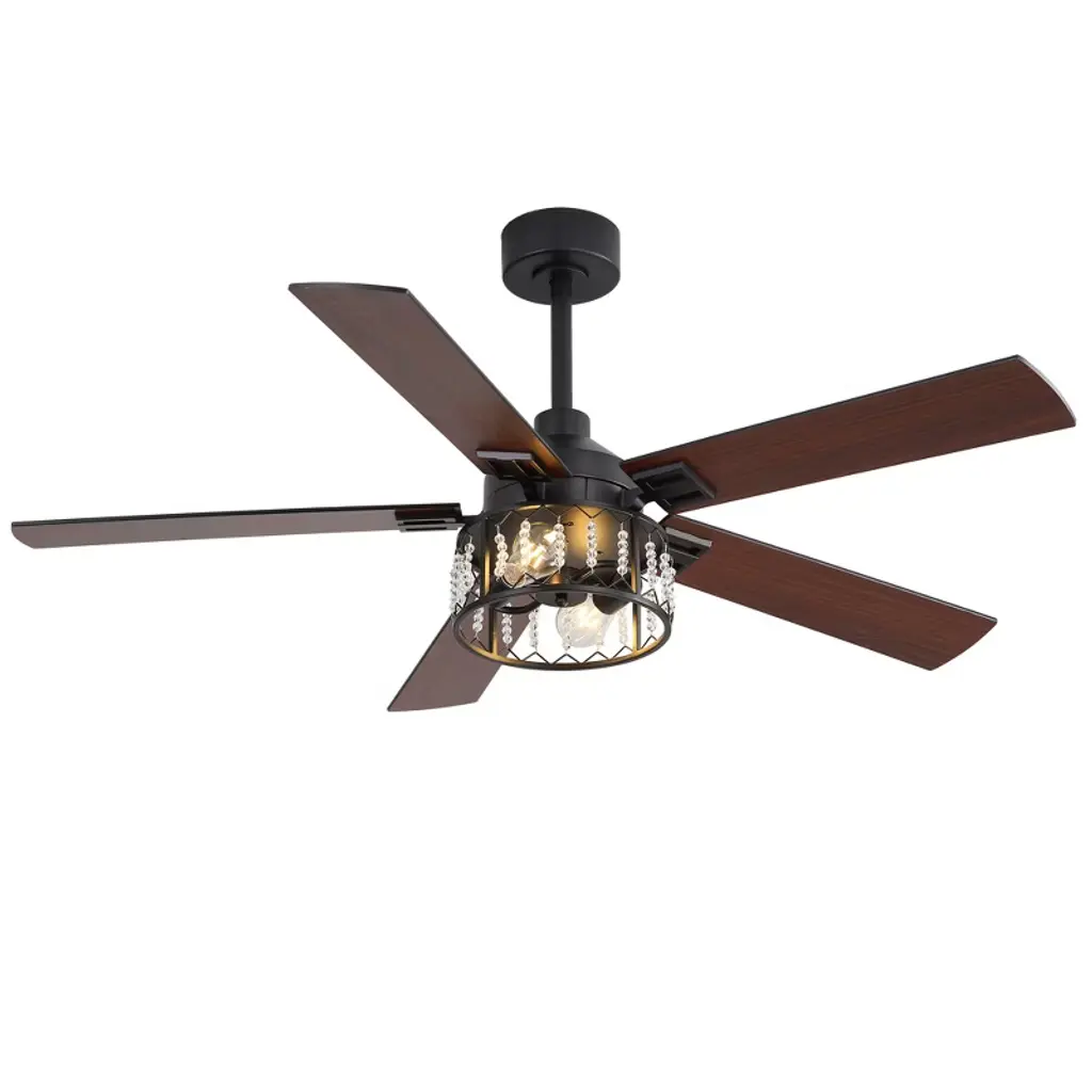 This ceiling fan is a great blend of style and function.The fan's Matte Black body is sleek and can match various home decors.Its 5 plywood blades in black with wood-grain look warm and natural.It has 2 E26 bulb sockets(bulbs not included).The memory function keeps the previous settings after a 15-second power cut.The DC motor has strong wind power and good wind output.The remote control provides 6 wind speed settings to ensure comfort during use.This ceiling fan is equipped with 2 Downrods(5inch,10inch).it offers high value, making your home more comfortable and stylish.