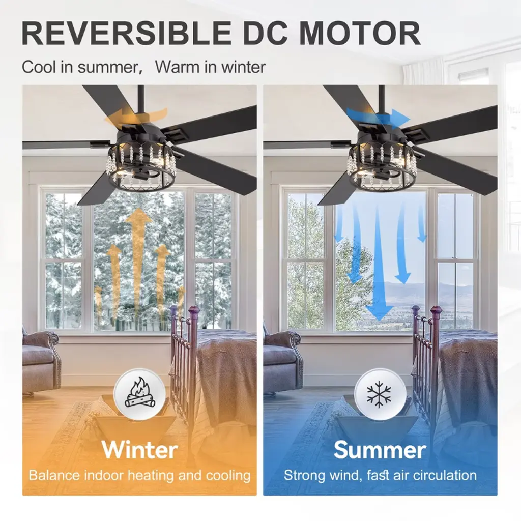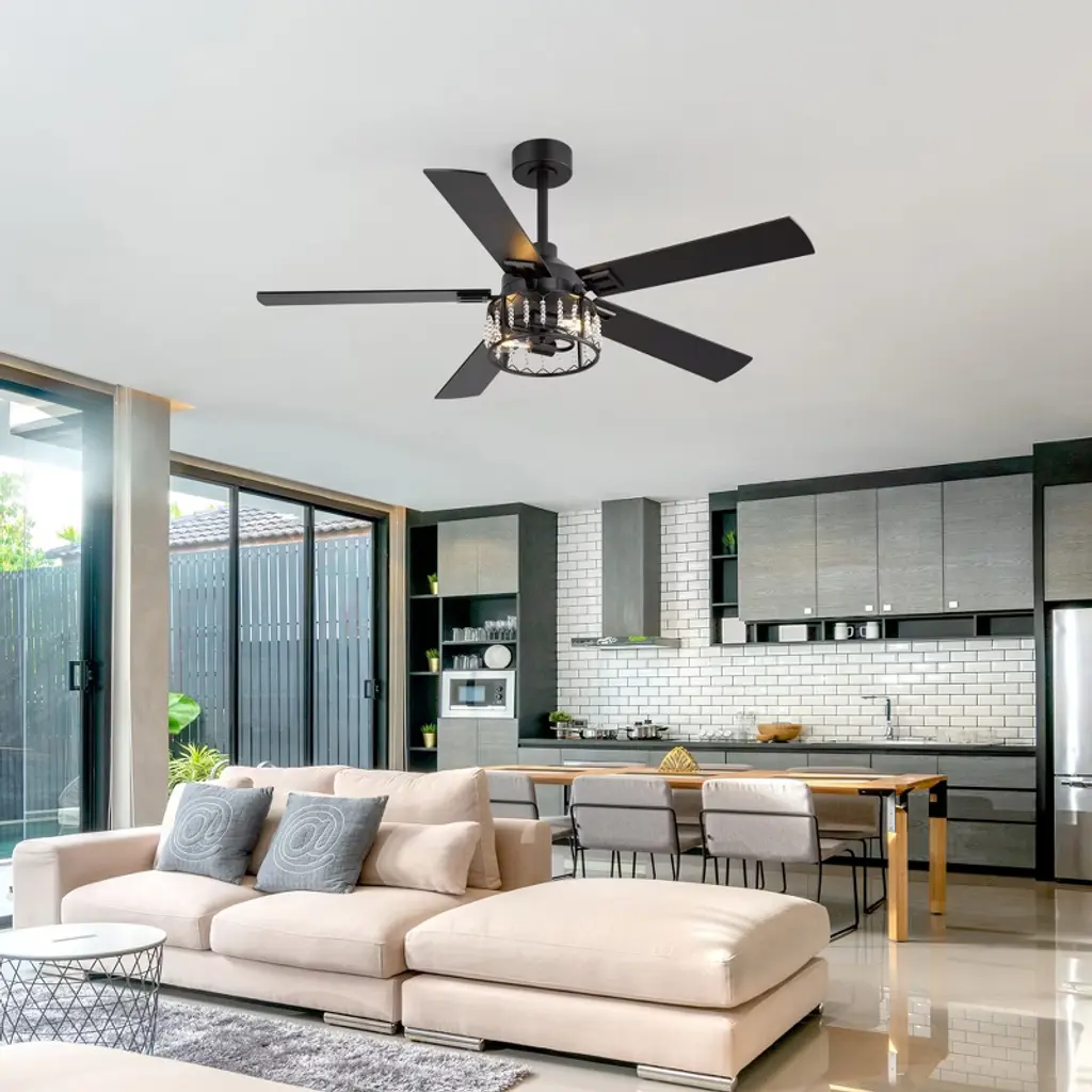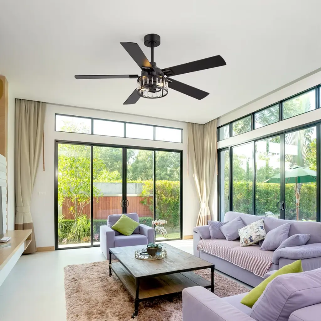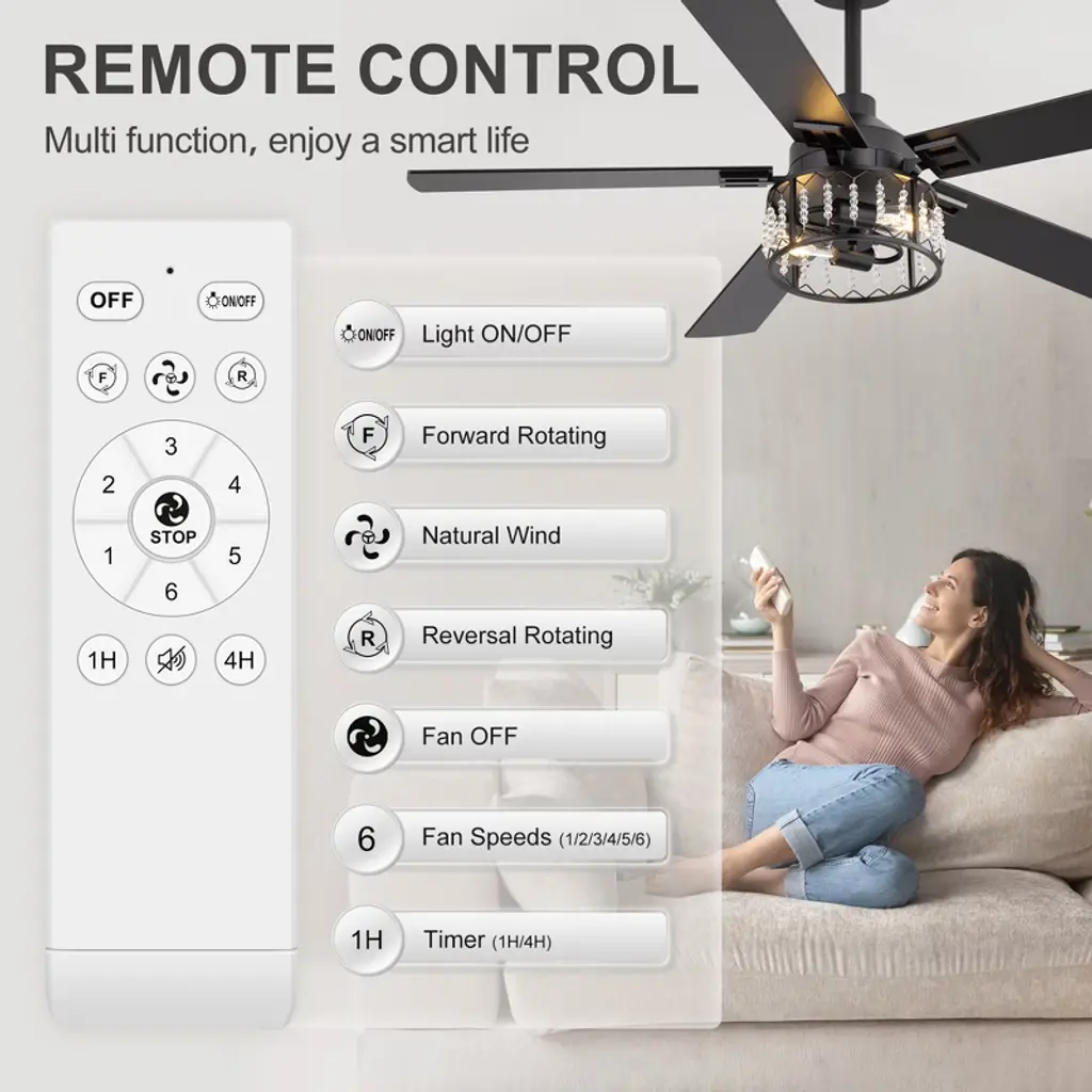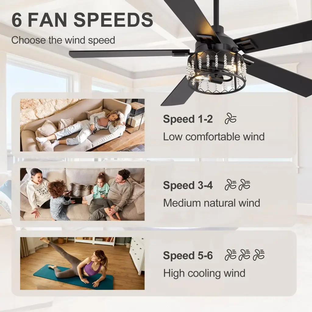 Airsurfer 52" Ceiling Fan With 5 Plywood Blades,ceiling Fan With Memory Function,6 Speeds Dc Motor,2 Downrods,remote Control Included,matte Black