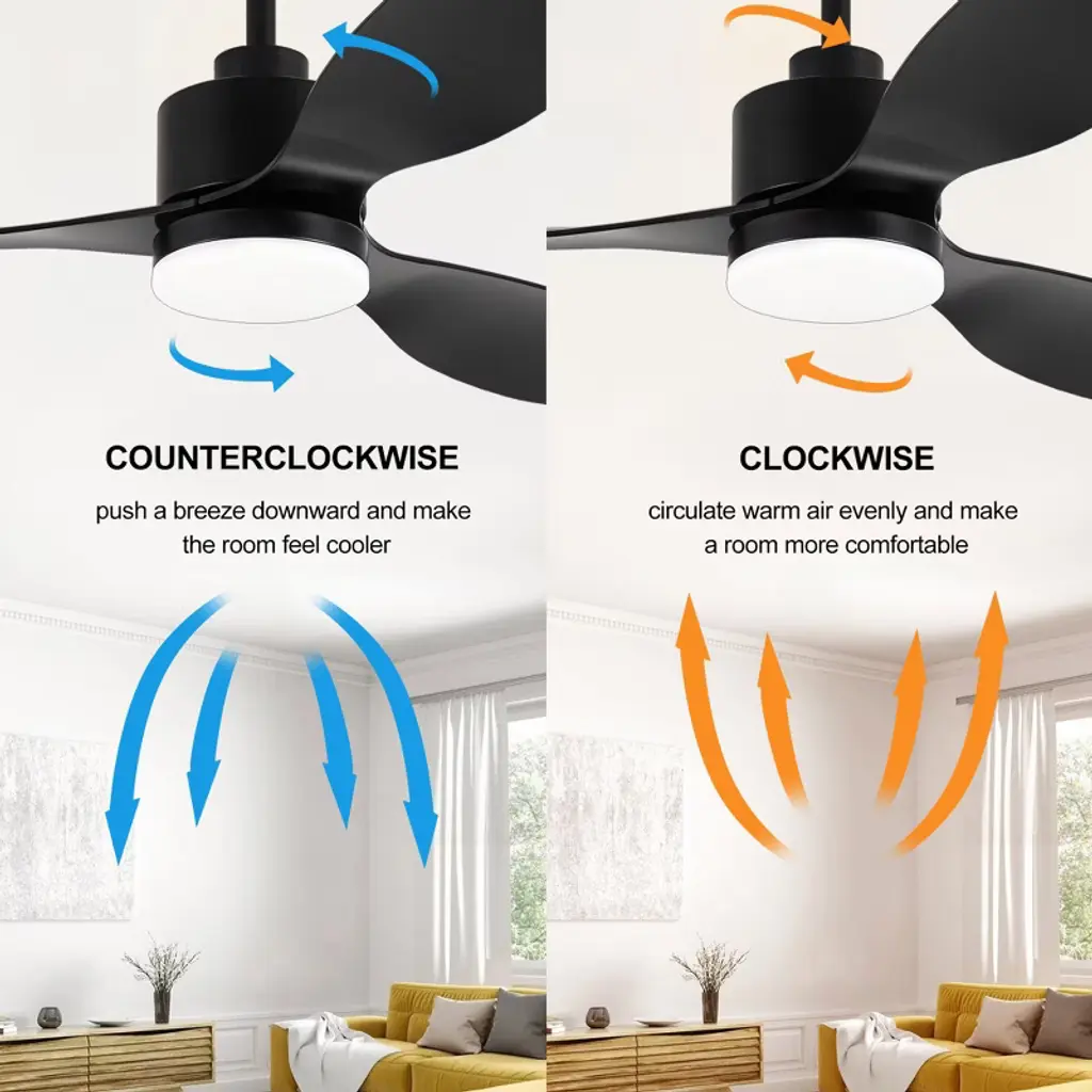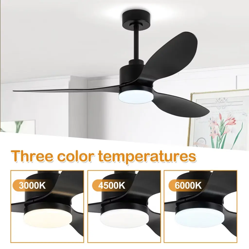 The 52" 3-blade ceiling fan with remote will add much character to your space.With a 40W DC reversible motor,this fan has a super quiet performance,no need to endure the noise while saving energy both in the summers and winters.Independently can control the light and fan by remote control.Also, easy to change the color temperature of light and wind speed.The integrated 18W LED light projects 1520 lumens,3000K warm white,4500K neutral white,and 6000K cold white.