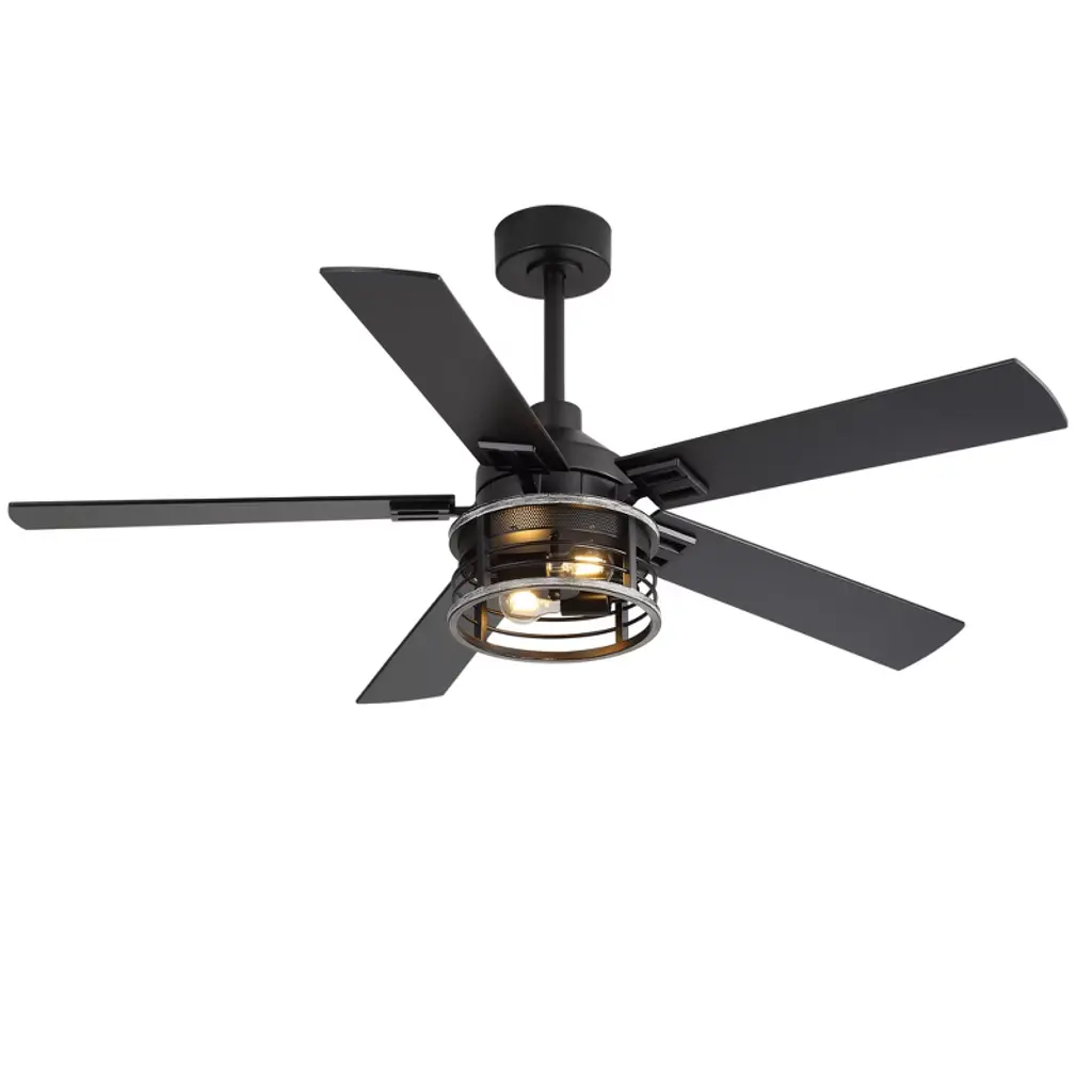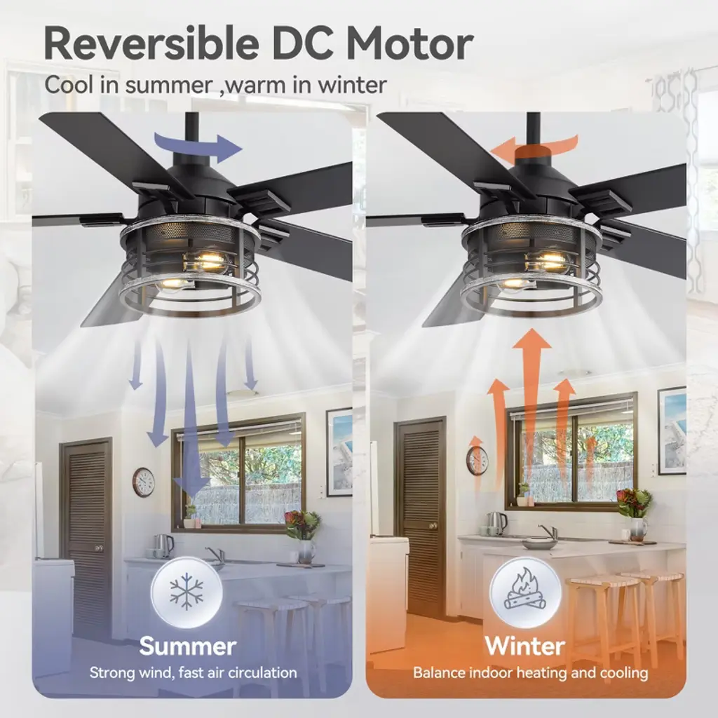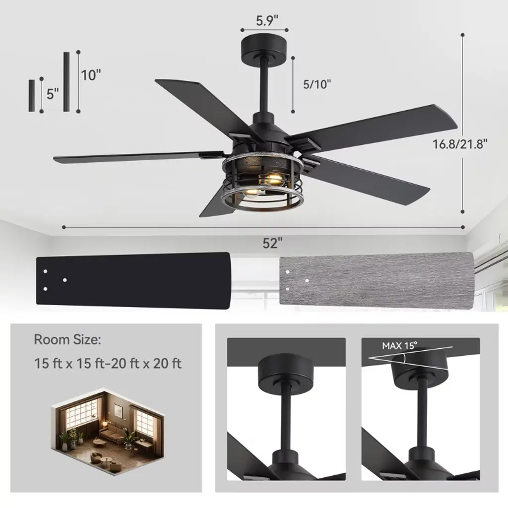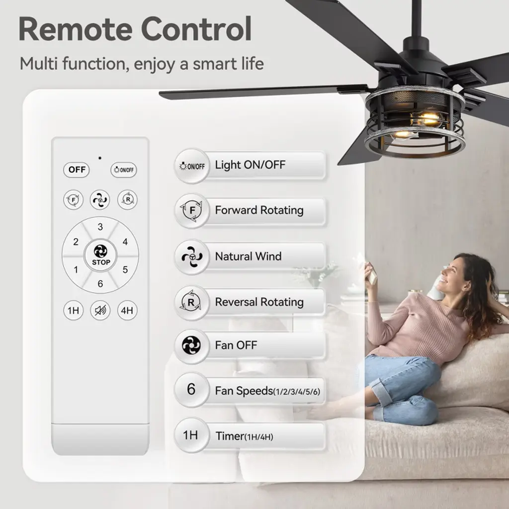 Airsurfer 52" Ceiling Fan With Light,ceiling Fan With 5 Plywood Blades And Remote Control,6 Speeds Dc Motor,memory Function,2 Downrods,matte Black