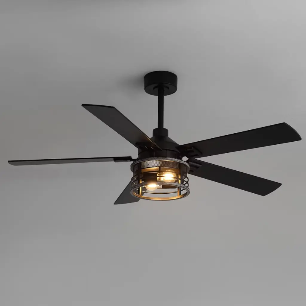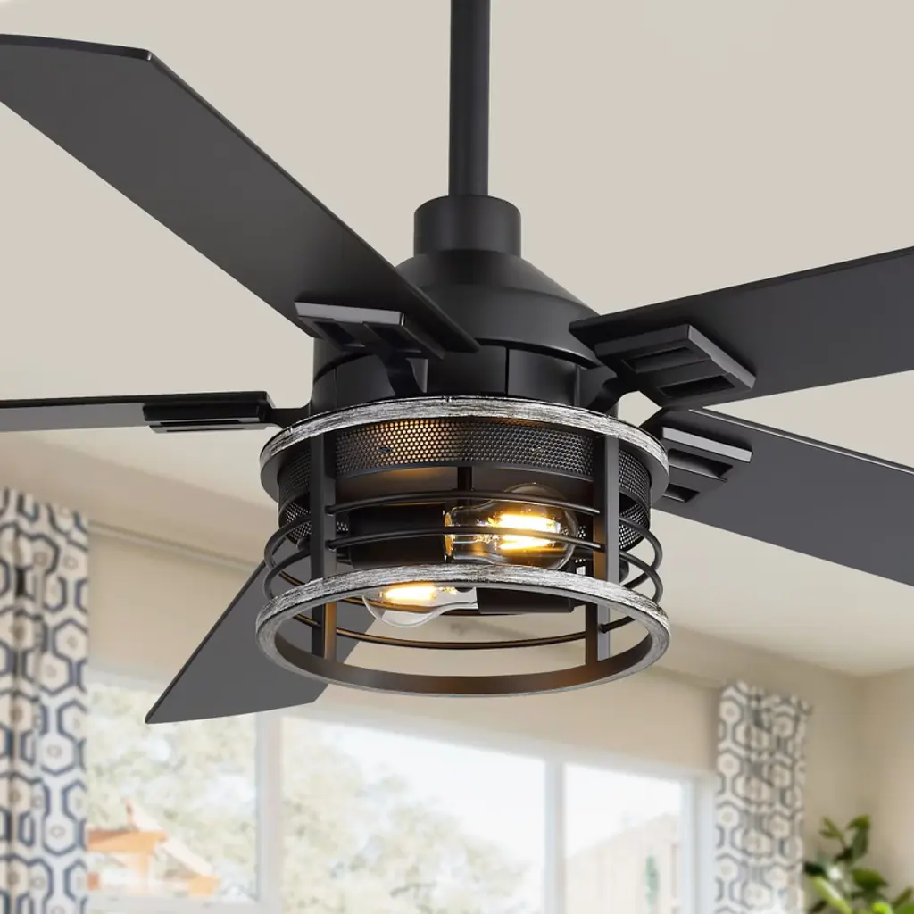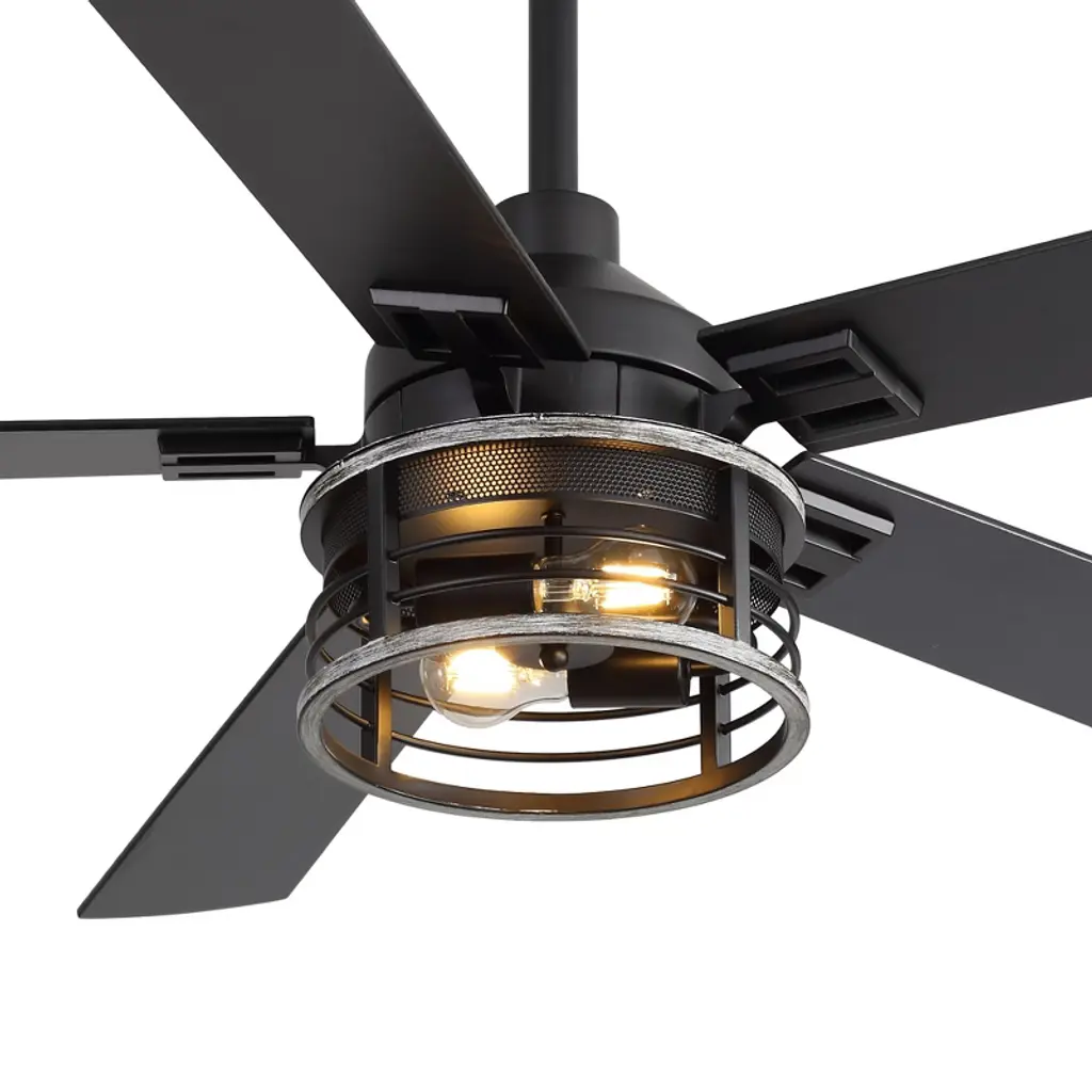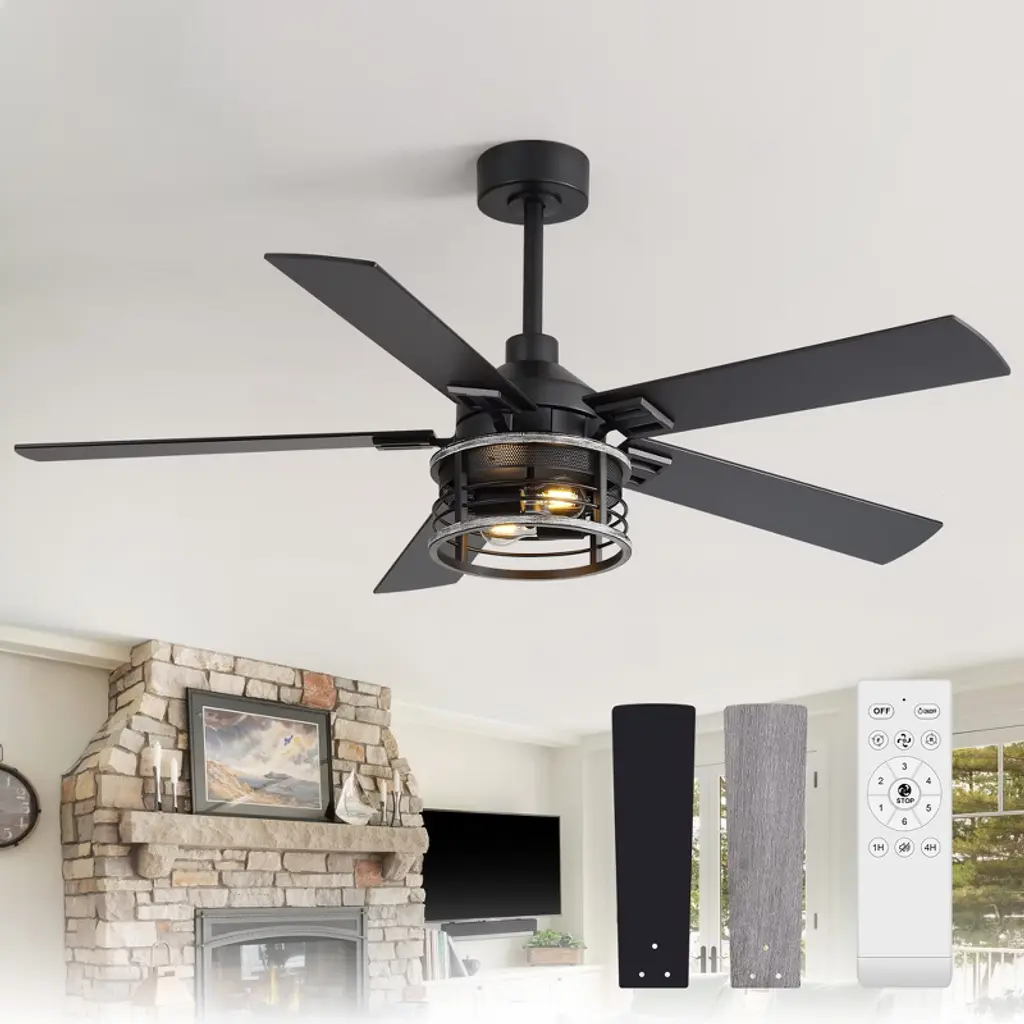 Airsurfer 52" Ceiling Fan With Light,ceiling Fan With 5 Plywood Blades And Remote Control,6 Speeds Dc Motor,memory Function,2 Downrods,matte Black