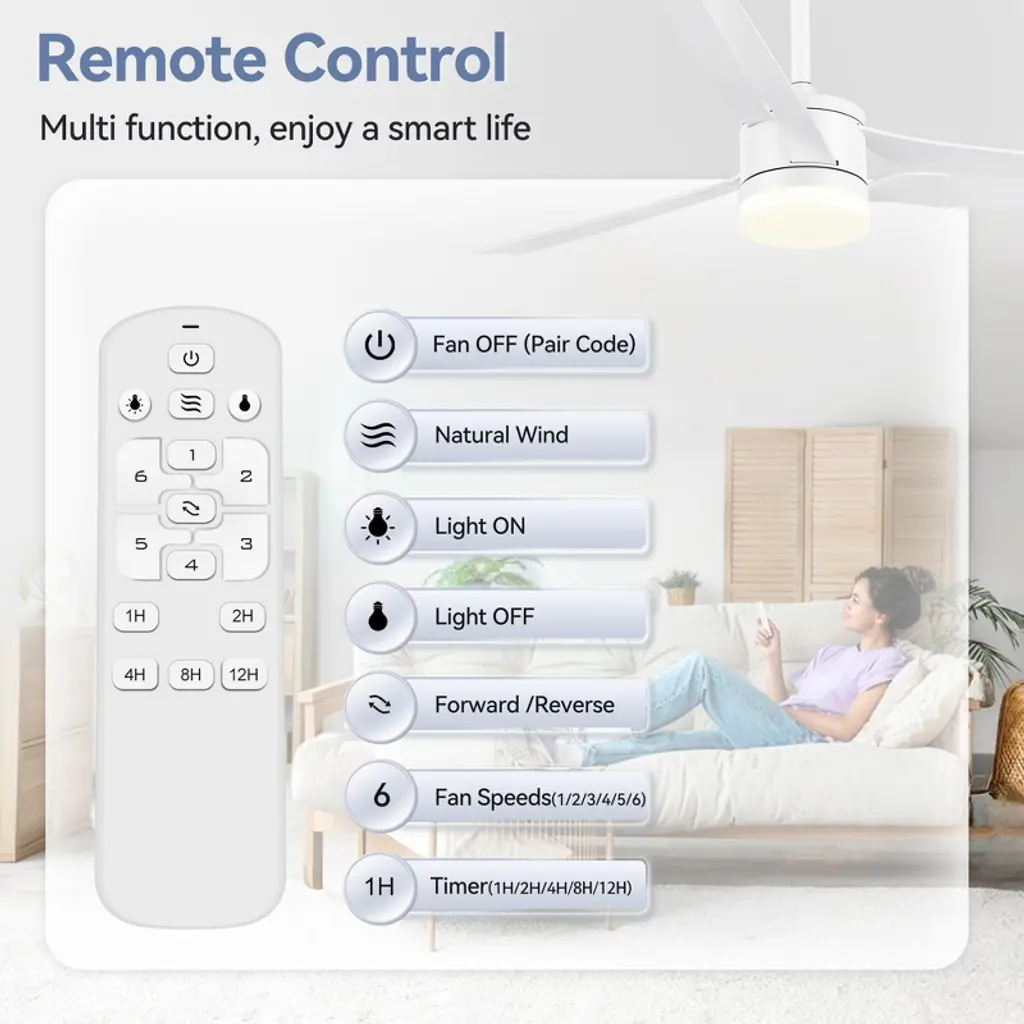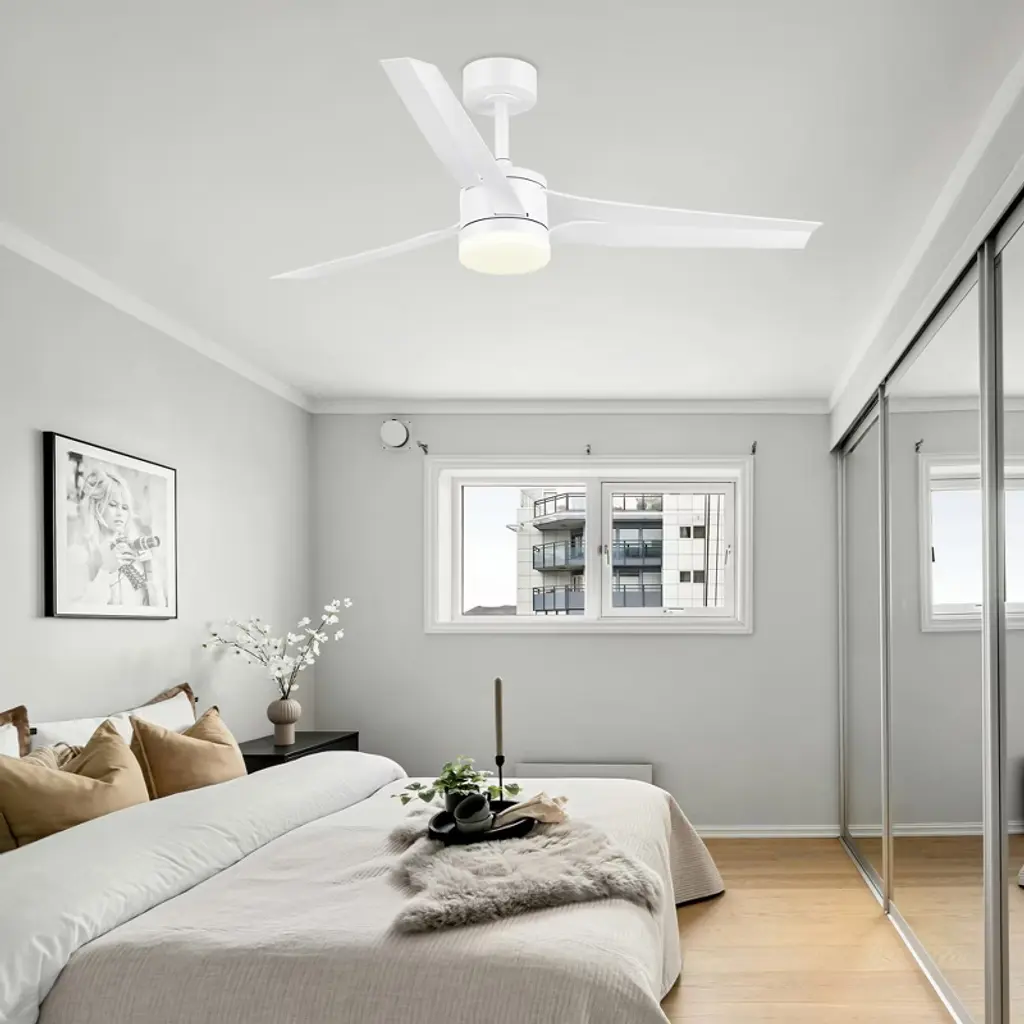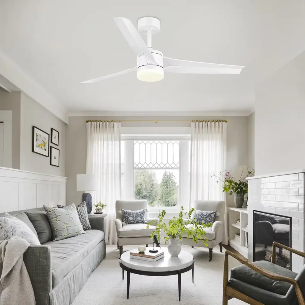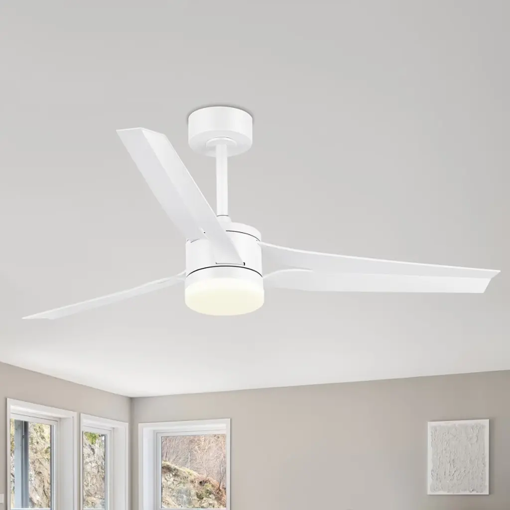 Lend a modern touch to your decor with the LED 52 in ceiling fan. The propeller-inspired 3-blade design ensures optimum air circulation while creating an enhanced visual appeal. It features a acrylic lampshade that creates a pleasing ambiance with its unique design and white/black finish, this ceiling fan complements various styles of decor.