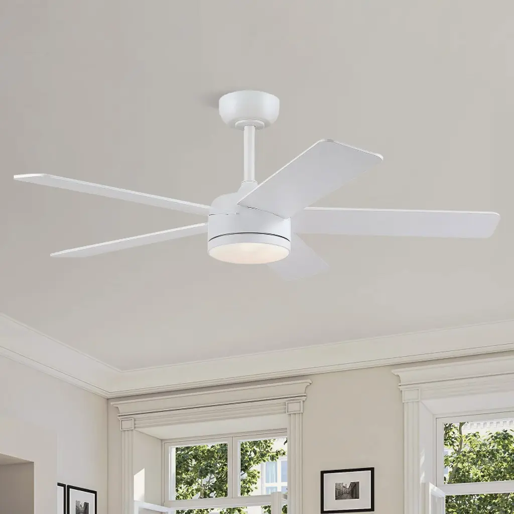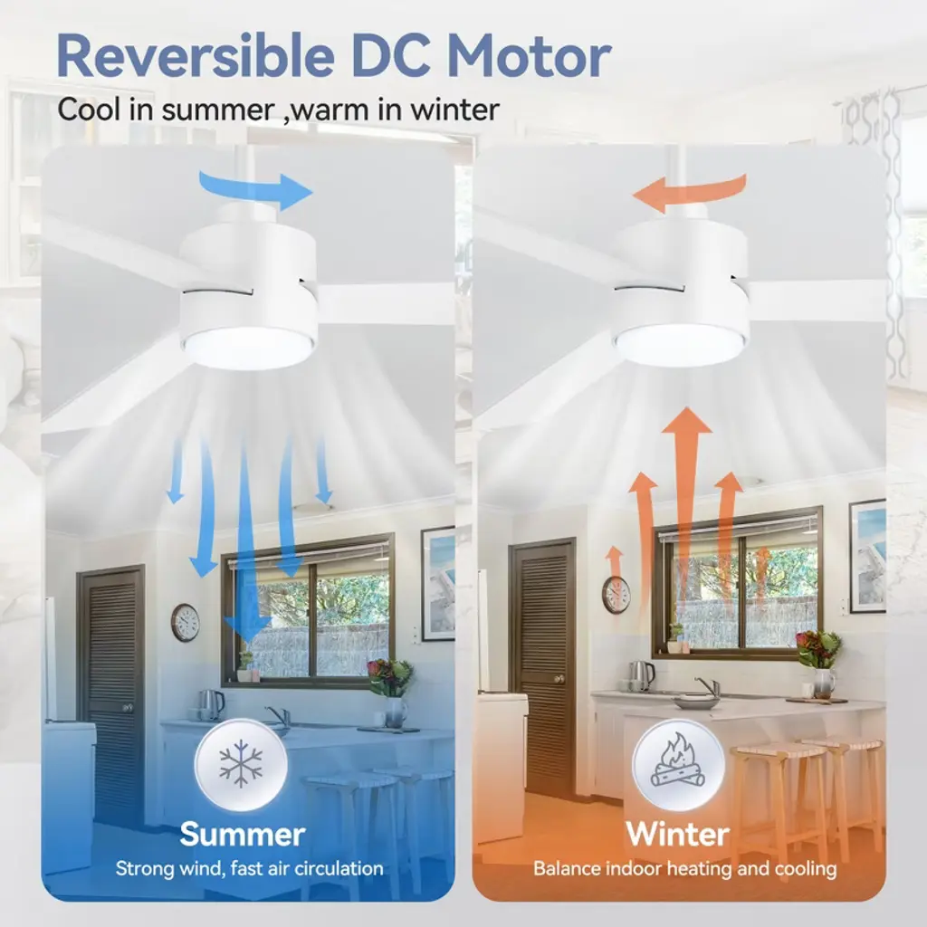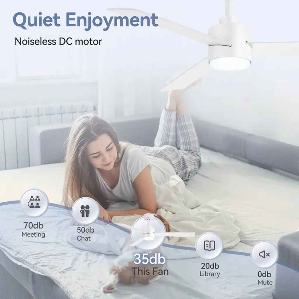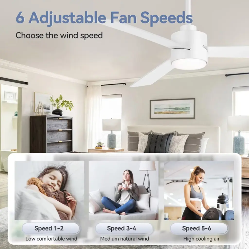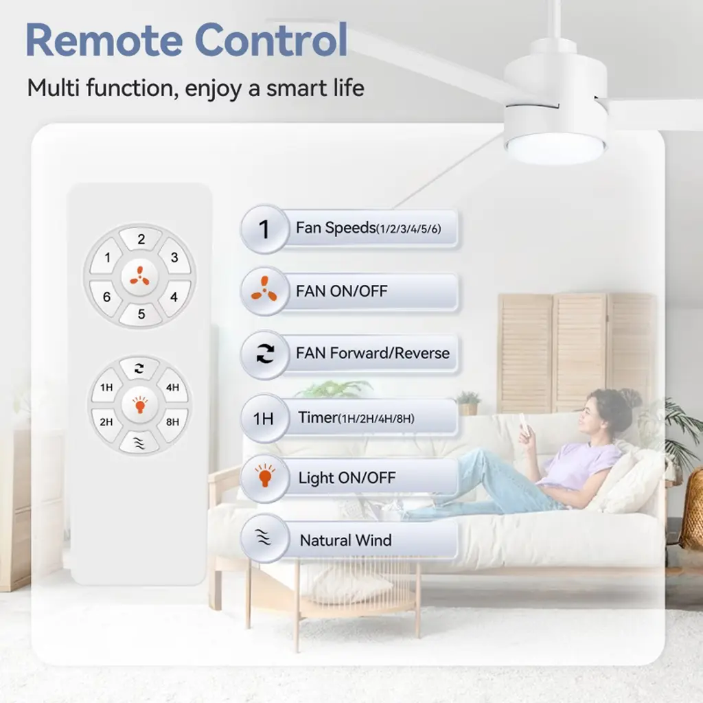 Bring comfort, style, and energy efficiency to your home with this 52-inch ceiling fan, a perfect addition to both modern and traditional spaces. Equipped with a powerful DC motor, it ensures whisper-quiet operation while delivering strong, consistent airflow. With six adjustable speeds and a reversible function, this fan provides customized comfort in both summer and winter. The included remote control allows for effortless adjustments from anywhere in the room, adding convenience to its impressive functionality. Its sleek design, durable construction, and energy-saving performance make it an excellent choice for living rooms, bedrooms, and dining areas alike.