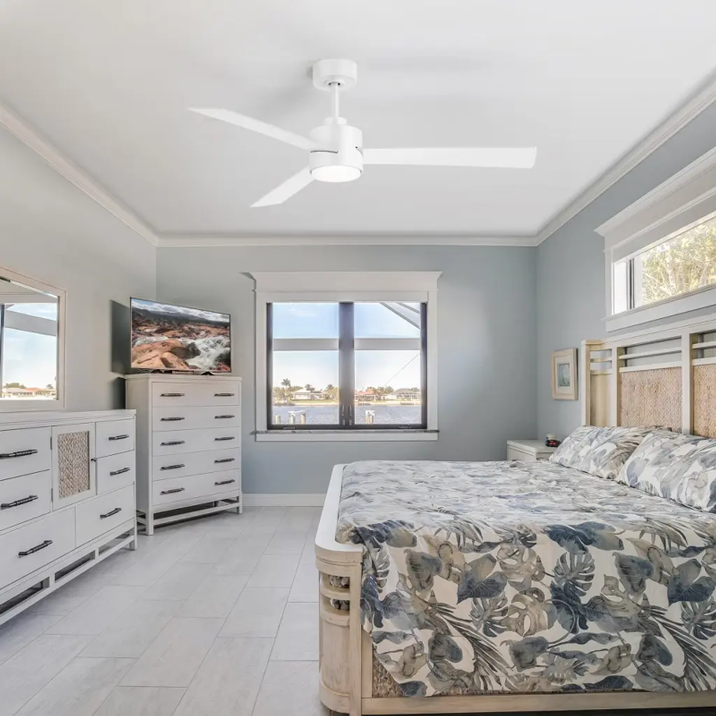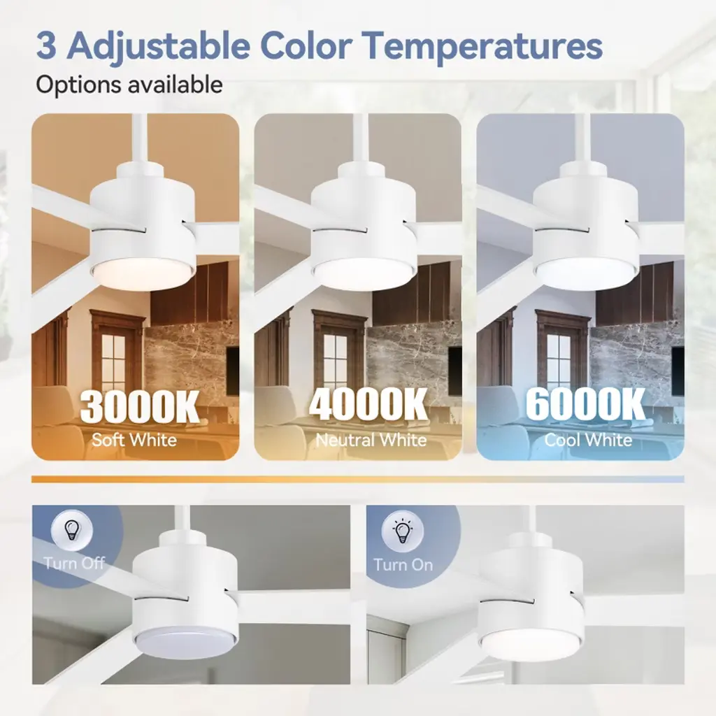Airsurfer 52" Modern Ceiling Fan With Dimmable Led Light & Reversible Motor, 3 Blades, Remote Control Included, White