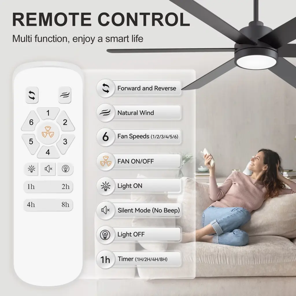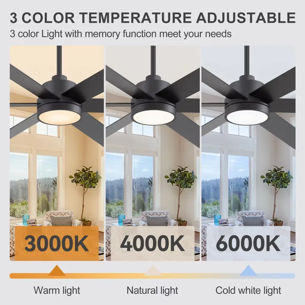 Transform your room with the modern elegance of the Breezary 60-Inch LED Ceiling Fan. Featuring a sleek matte black ABS light cover, six high-quality plywood blades in a black finish, and an energy-efficient 22W LED light that offers three adjustable color temperatures , this fan is designed to enhance your space while keeping it cool and comfortable.