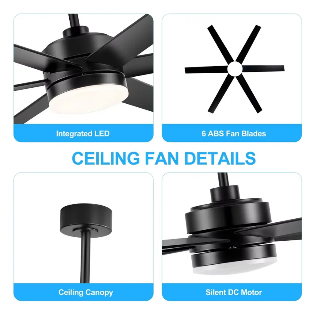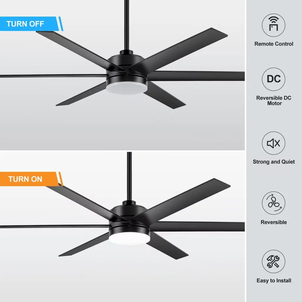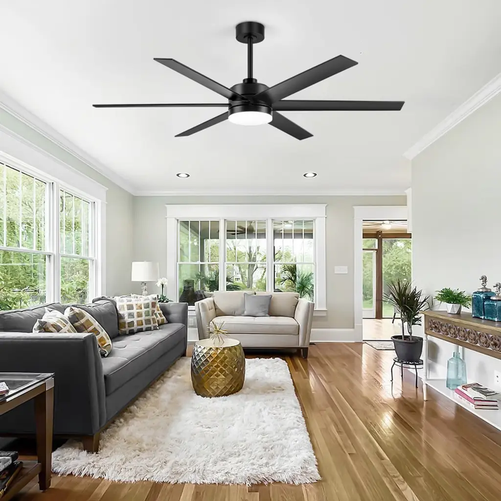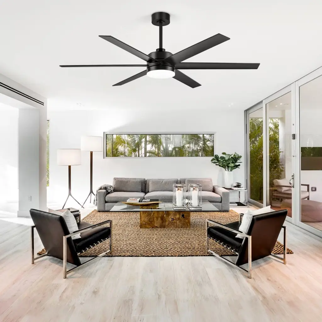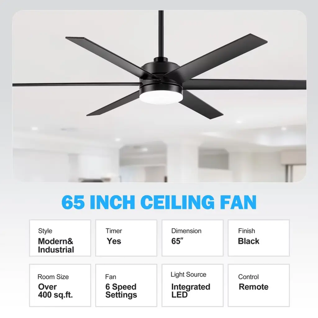 The Airsurfer 65" Color-Changing LED Chandelier Ceiling Fan features a sleek black finish with stylish plywood blades, combining elegant design with modern functionality. Equipped with integrated LED lighting (3000K, 4000K, 5700K), it allows for adjustable brightness and color temperature. The 6-blade configuration ensures powerful airflow, and the included remote lets you easily control fan speed and lighting. Ideal for large spaces with contemporary or industrial interiors.