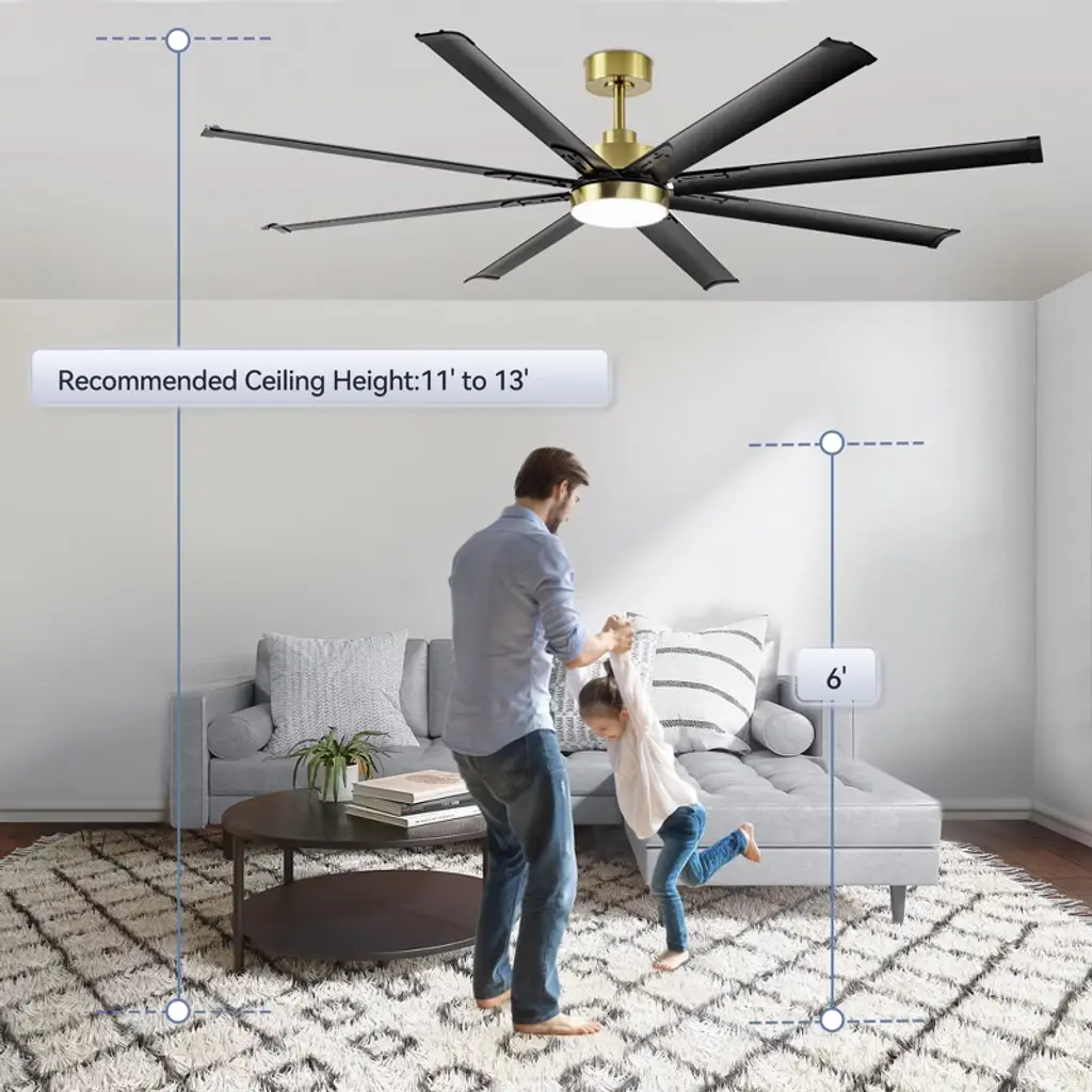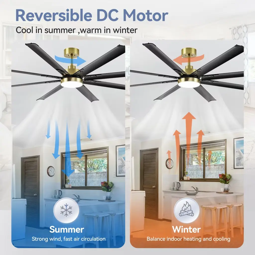 Airsurfer 72" Ceiling Fan With Color-changing Led Light And Light Memory Function,8 Blades Ceiling Fan With 7"/24" Downrods,remote Included