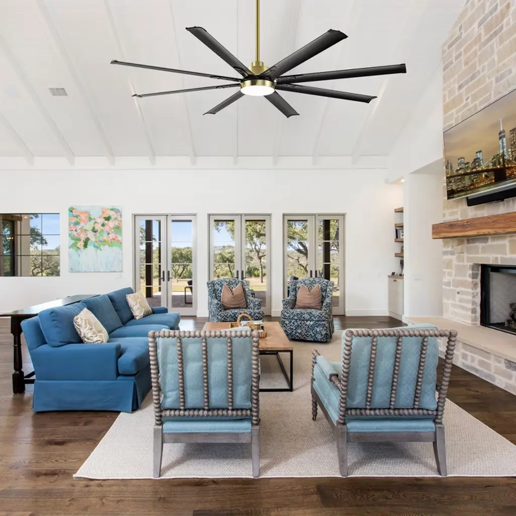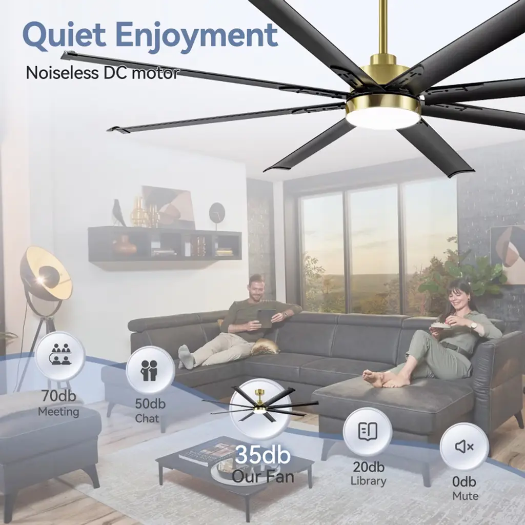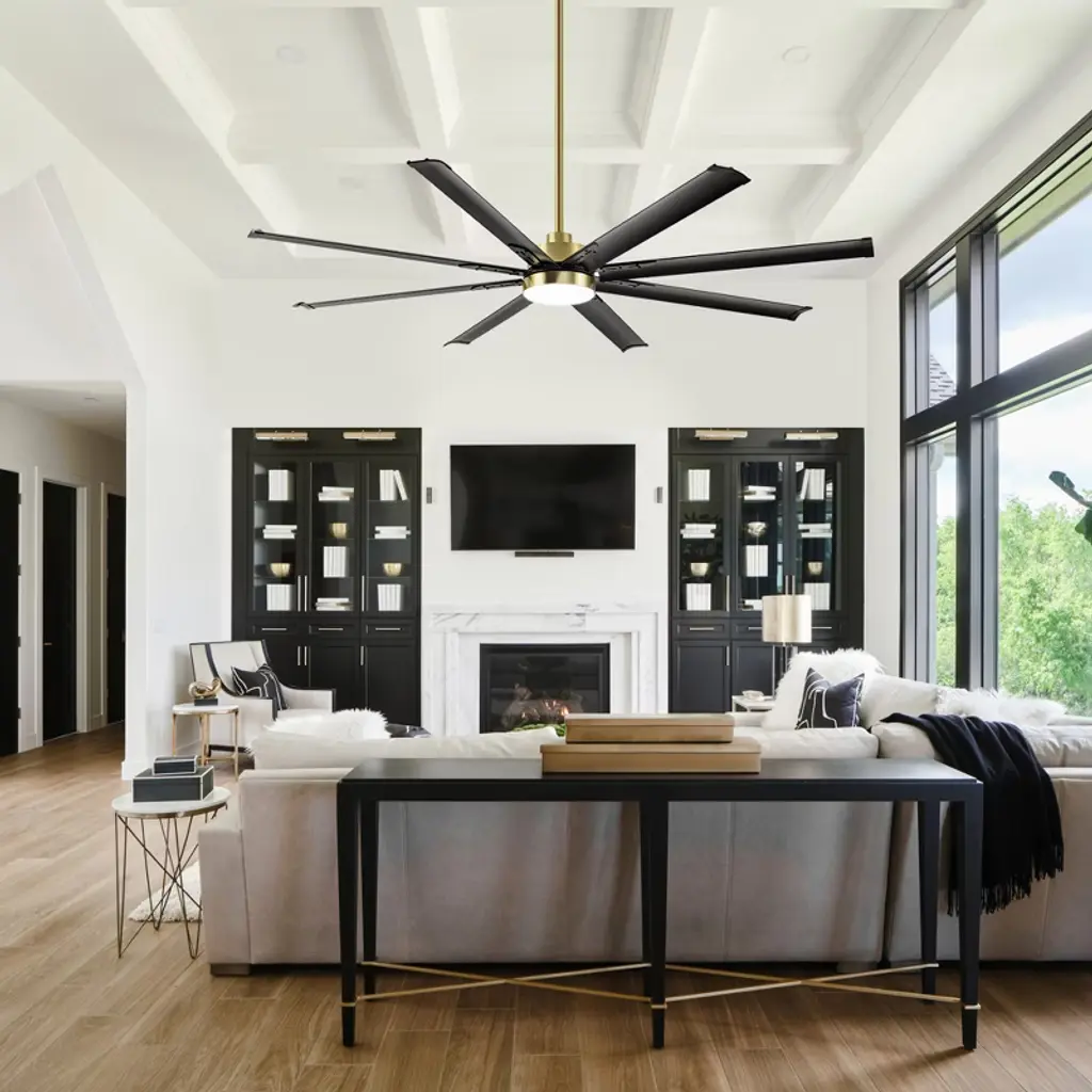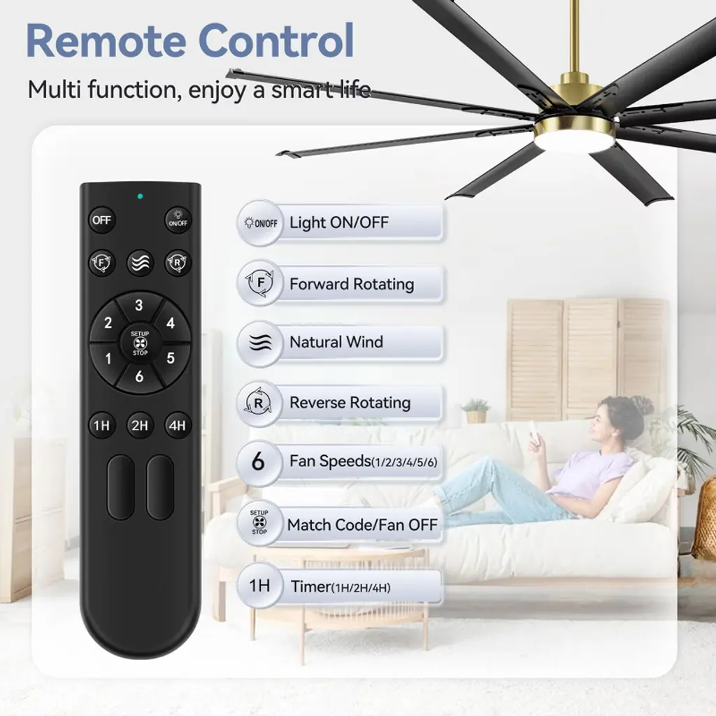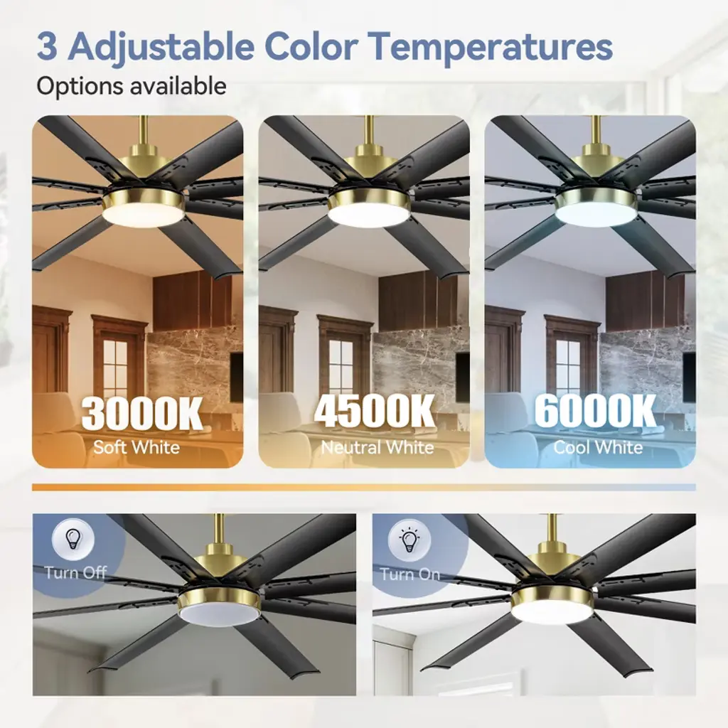 Enhance your outdoor spaces with the Airsurfer 72-inch Windmill Ceiling Fan. Designed with a sleek electroplated gold and black finish, paired with matte black blades, this fan brings both style and functionality to your patio, porch, or garden. The integrated LED light offers adjustable color temperatures , allowing you to customize your lighting atmosphere. Featuring a powerful 8-blade design for optimal air circulation, it ensures both comfort and elegance. The included remote control allows for easy adjustments of fan speed and lighting. Perfect for outdoor settings, this ceiling fan combines modern design with practical functionality.