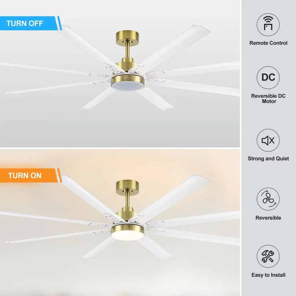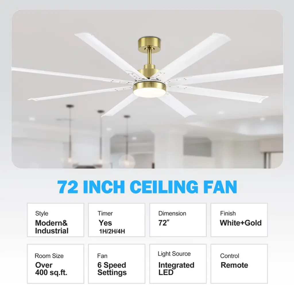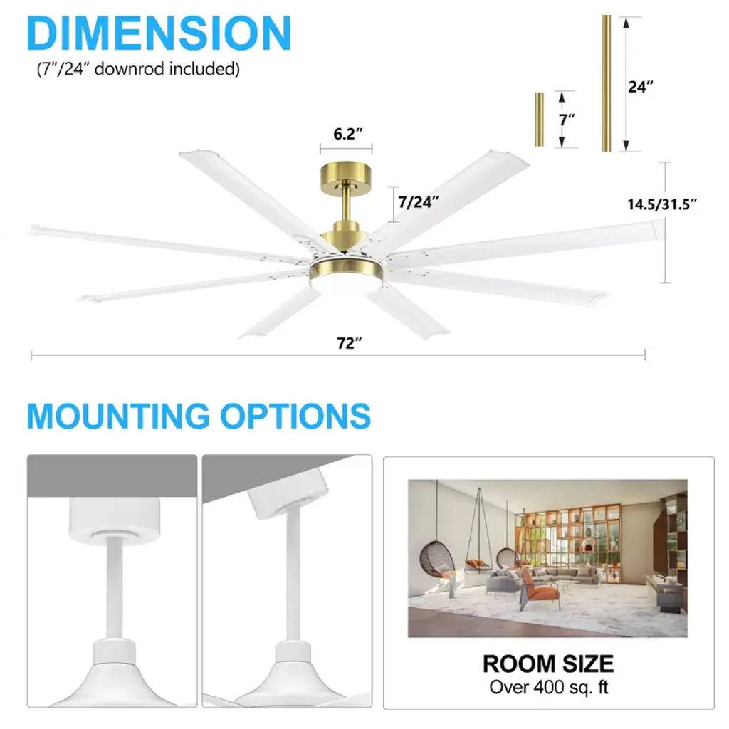 Airsurfer 72" Ceiling Fan With Color-changing Led Light And Light Memory Function,8 Blades Ceiling Fan With 7"/24" Downrods,remote Included