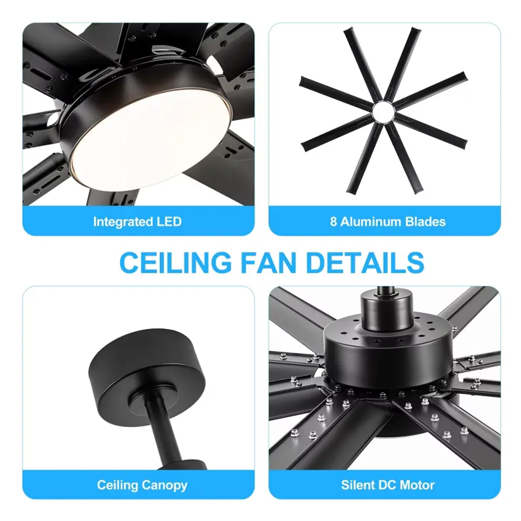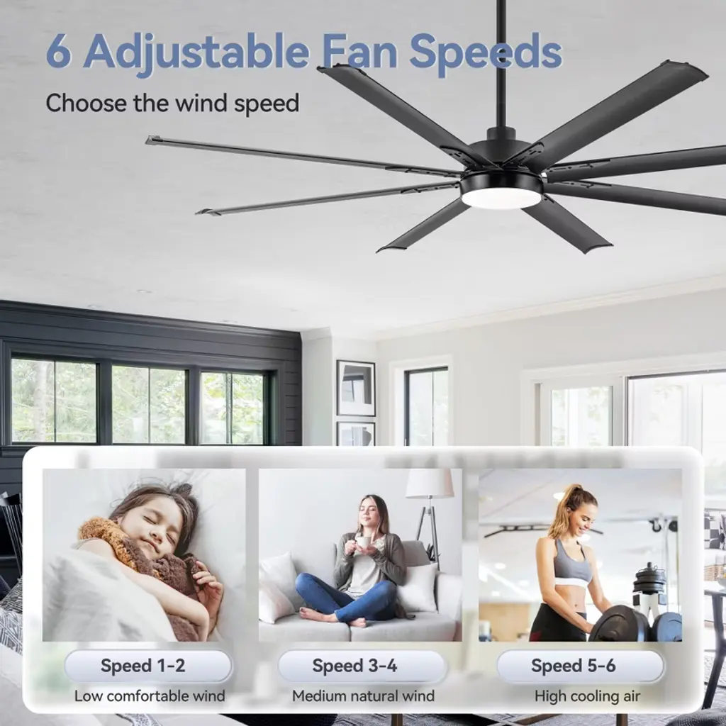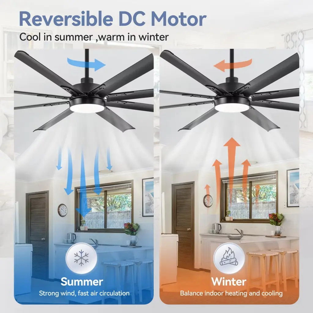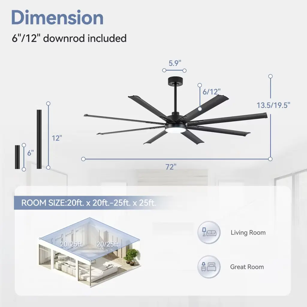 Airsurfer 72" Ceiling Fan With Color-changing Led Light And Light Memory Function,8 Blades Ceiling Fan With 7"/24" Downrods,remote Included