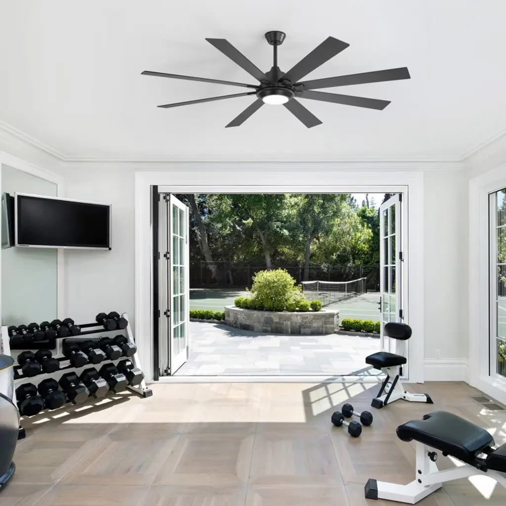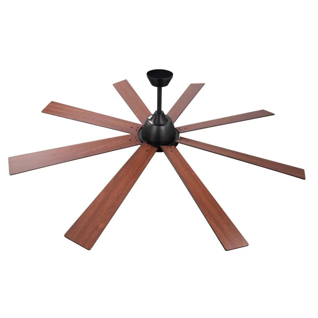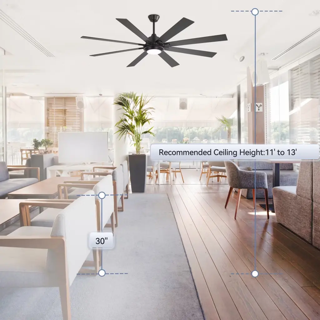 Upgrade your large living spaces with this 72-inch ceiling fan in a matte black finish. Designed for performance and comfort, it features 8 reversible plywood blades in black and walnut tones, a high-efficiency DC motor, and tri-color LED lighting. The included remote control offers 6 wind speeds, lighting control, reverse airflow, and a 1/4/8 hour timer. With built-in memory function, the fan remembers your last lighting setting even after power loss. Easy to install with two included downrods and a 15¡ã compatible mounting angle. Perfect for living rooms, open-concept spaces, or high-ceiling areas that need reliable airflow and a clean modern look.