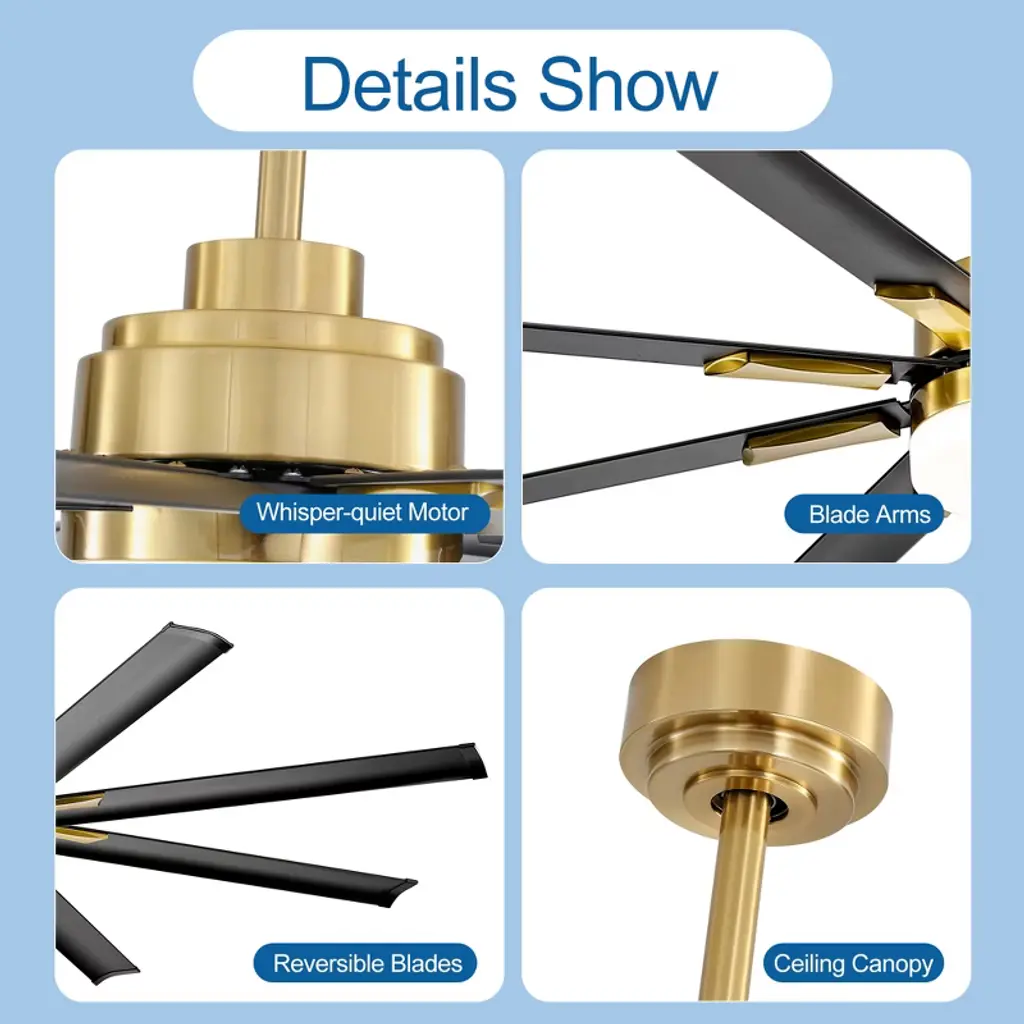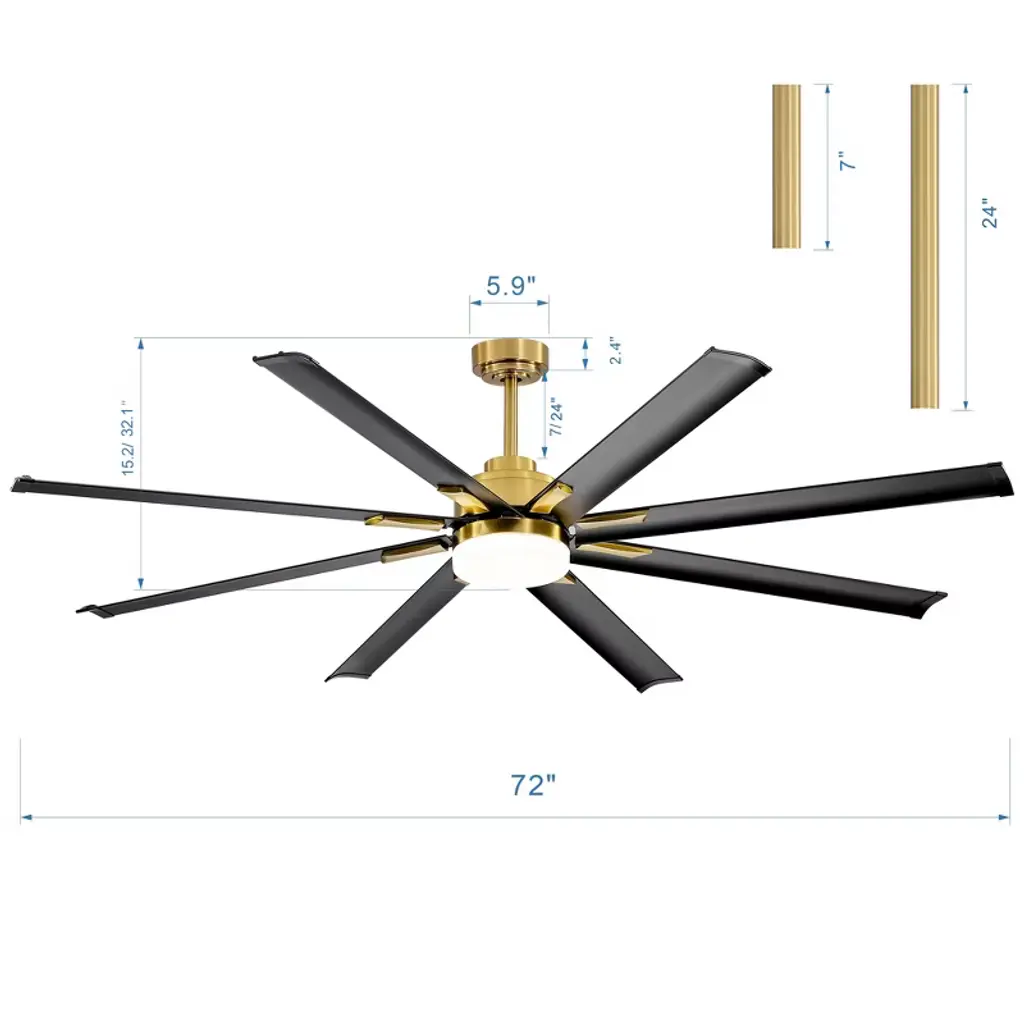 Airsurfer 72" Modern Large Ceiling Fan With Dimmable Led Light & Reversible Motor, Remote Control, For Indoor/outdoor Covered Spaces