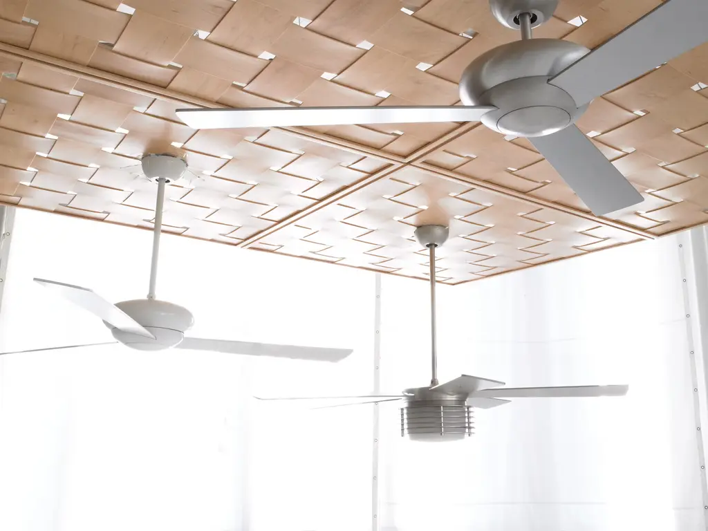 In the late 1980s, Ron Rezek was hired by a ceiling fan company to conceive a modern design, which became an instant success. He went on to create a collection of sleek, efficient, and durable wobble-free fans. The Altus Ceiling Fan (2004) has three blades and can be operated at multiple speeds. Compatible with ceilings pitched up to 33.5 degrees. Remote control stores in a wall-mounted cradle. Bulb (included): 20W LED module. Made in Taiwan.