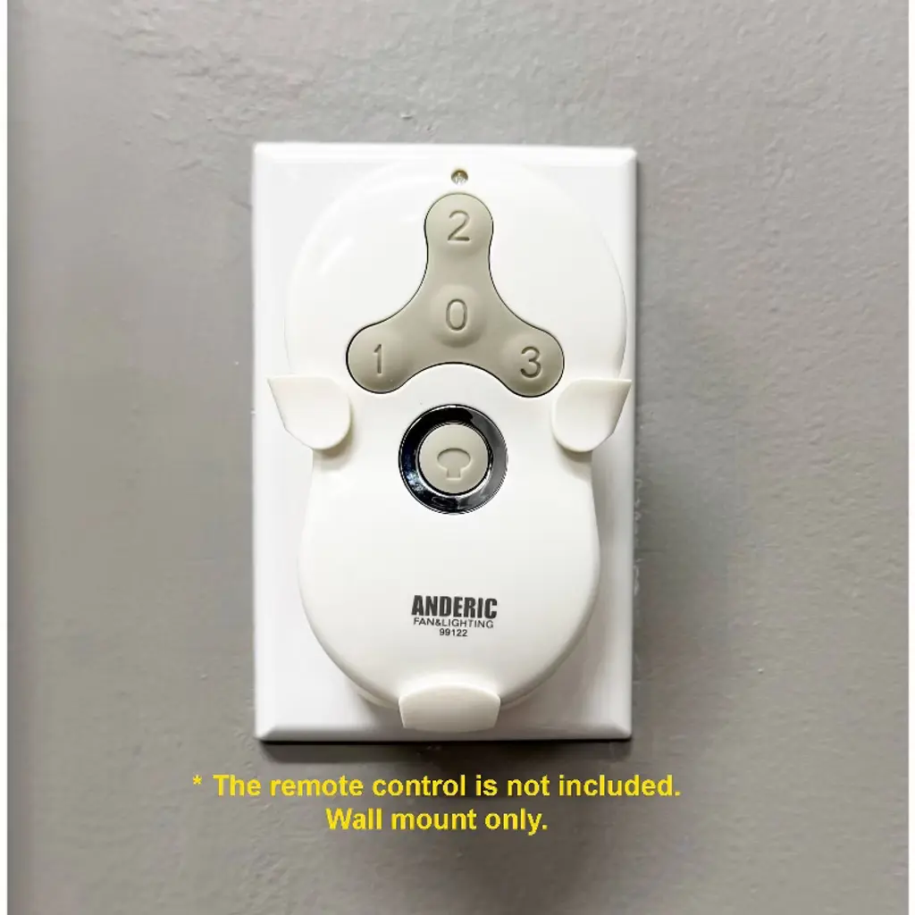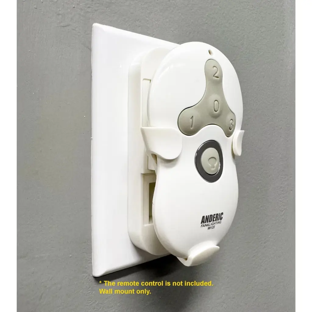The Anderic 99122WM Wall Mount Bracket offers a clean and efficient solution for storing your ceiling fan remote control. Compatible with Hunter remote models 99122, 99123, RAN003, K047402, and other remotes of the same style, this bracket installs directly onto your existing wall switch plate using the same screws—no additional hardware needed. Perfect for keeping your remote accessible and secure, the 99122WM helps eliminate clutter while complementing your décor with its low-profile white finish. Ideal for bedrooms, living rooms, or any space where you need easy remote access, this bracket helps streamline your environment and reduces the chance of misplacing your remote.