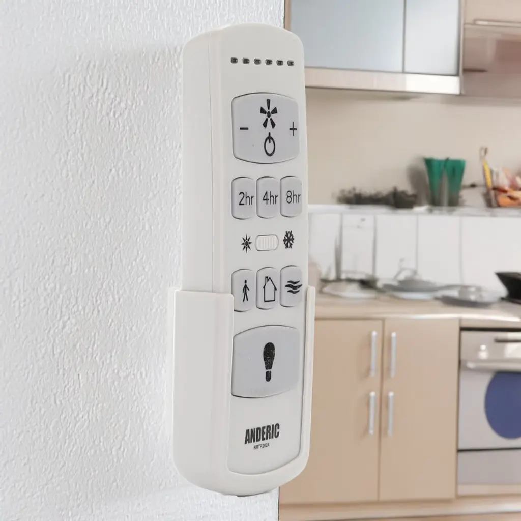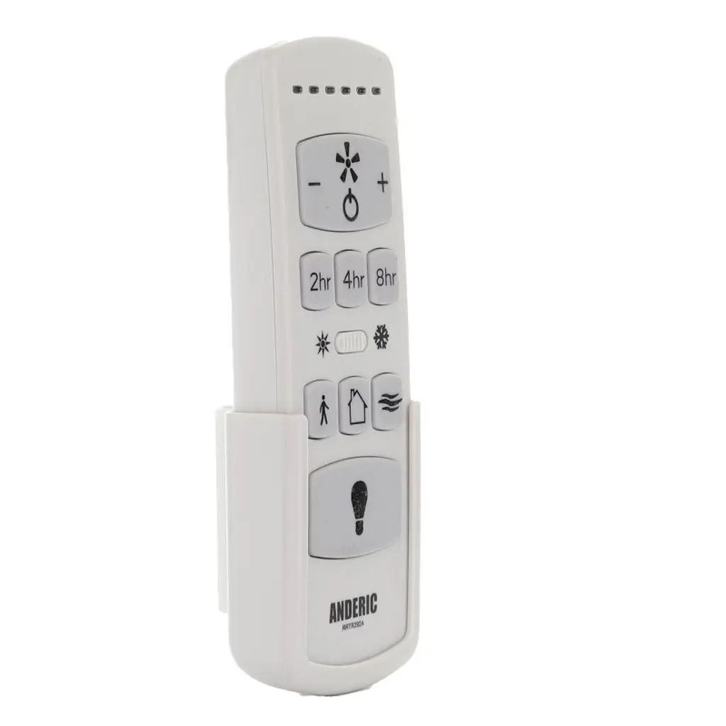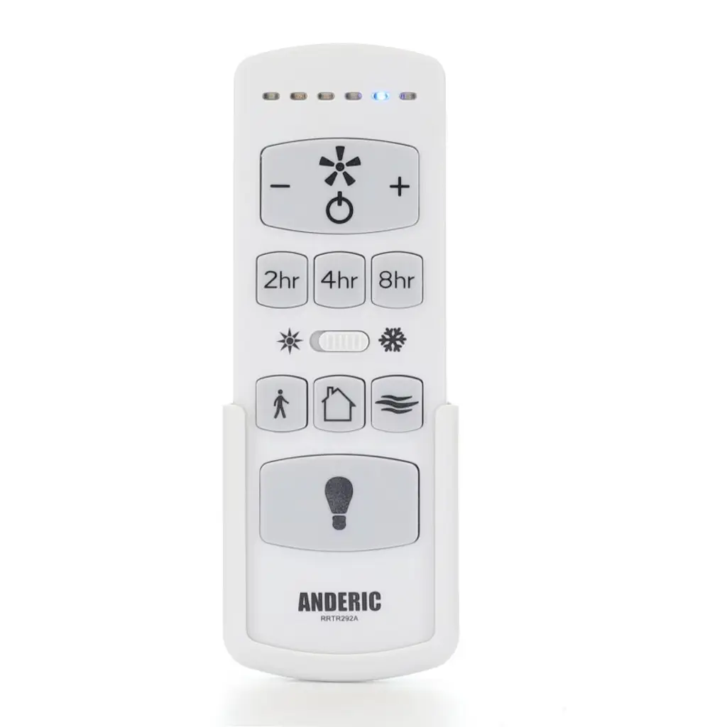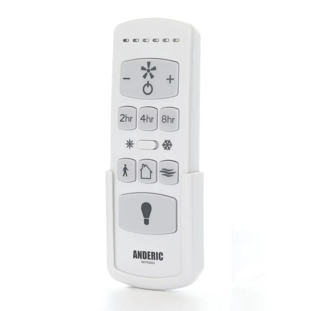 The Anderic RRTR292A for KUJCE10612, TR292A, TRD050G1M, 2AQZU18053, 41371 Harbor Breeze Ceiling Fans Remote Control Upgrade your Harbor Breeze ceiling fan experience with the Anderic RRTR292A Remote Control, designed to work seamlessly with fans that require the TR292A, KUCJE10612, TRD050G1M, or 2AQZU-18053 handheld remote controls. Specifically engineered for 6-speed DC fans, the remote offers a wide range of features to enhance your comfort and convenience. Easily pair the Anderic RRTR292A with your compatible fan using the learning key located inside the battery compartment. This remote provides comprehensive control over your ceiling fan, including fan speed adjustments, fan timer controls, fan direction, and advanced features like the light walk away feature, home away mode, fan breeze, and light on/off functions. The remote comes with a wall mount bracket for easy installation and accessibility, along with detailed instructions to guide you through the setup process. Please note that the remote requires two AAA batteries (not included) for operation. Enhance your ceiling fan’s functionality and enjoy greater control with the Anderic RRTR292A Remote Control. Key Features: 1. Wide Compatibility: Works with Harbor Breeze ceiling fans that require the TR292A, KUCJE10612, TRD050G1M, or 2AQZU-18053 remote controls, ensuring seamless integration with your existing setup. 2. 6-Speed DC Fan Control: Specifically designed for 6-speed DC fans, offering precise adjustments for optimal comfort. 3. Easy Pairing: Easily pair the remote with compatible fans using the learning key located inside the battery compartment, ensuring a quick and hassle-free setup. 4. Comprehensive Functionality: Control fan speeds, set fan timers, adjust fan direction, and utilize advanced features like the light walk away feature, home away mode, fan breeze, and light on/off functions. 5. Convenient Design: Includes a wall mount bracket for easy installation and accessibility, along with detailed instructions for effortless setup. Requires two AAA batteries (not included) for operation.