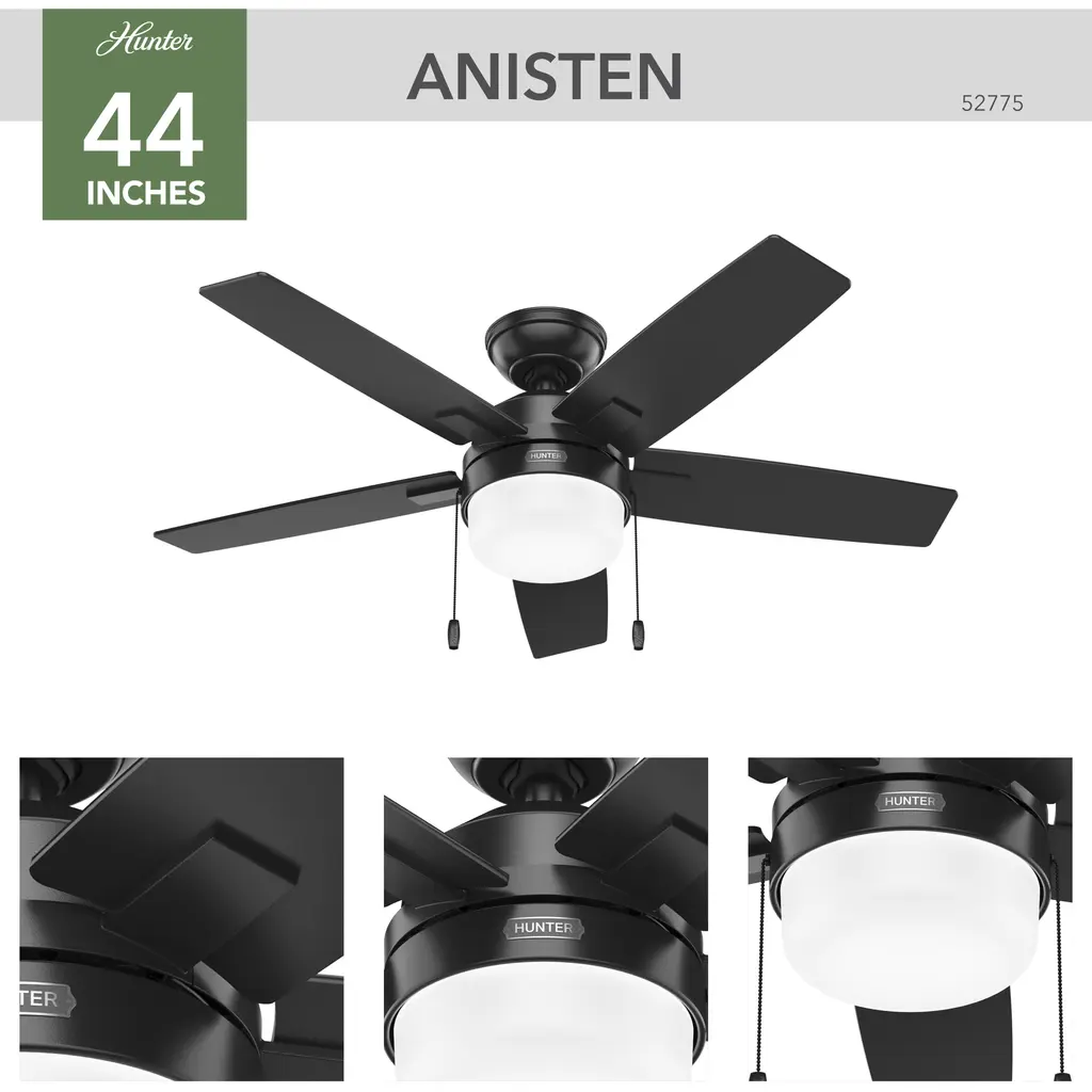 Anisten 44 Inch Matte Black With Matte Black/dark Gray Oak Blades Ceiling Fan