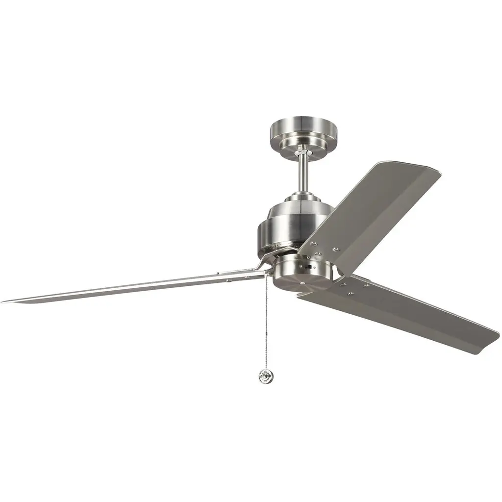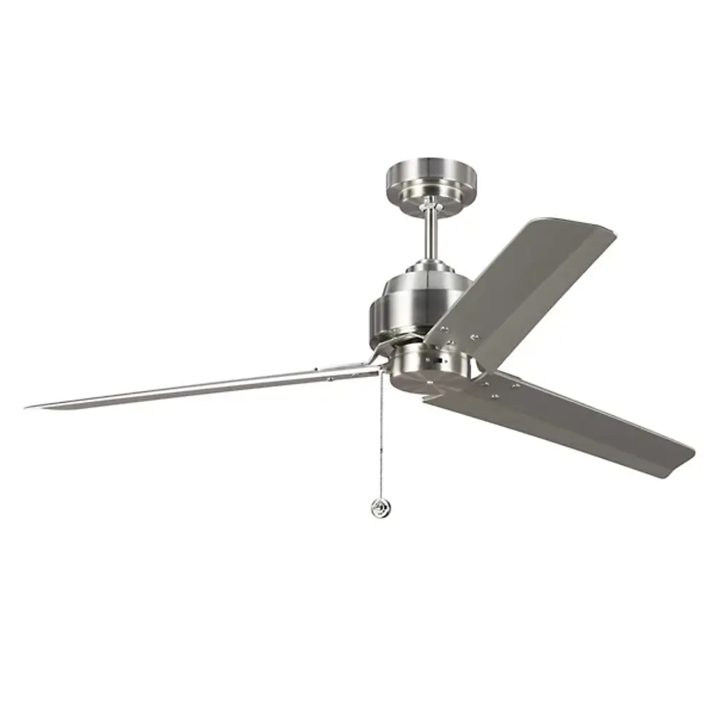 The Arcade Ceiling Fan by Visual Comfort Fan, formerly known as Monte Carlo, helps create a comfortable atmosphere indoors. With a crisp, clean, and contemporary design, this three-blade fan has precision-balanced steel blades for a smooth and quiet operation in the room. Efficiently moving air throughout, this handsome fan is accented with a simple and practical pull chain, easily accessing three different speeds and a reversible option that keeps it functional throughout the changing seasons.