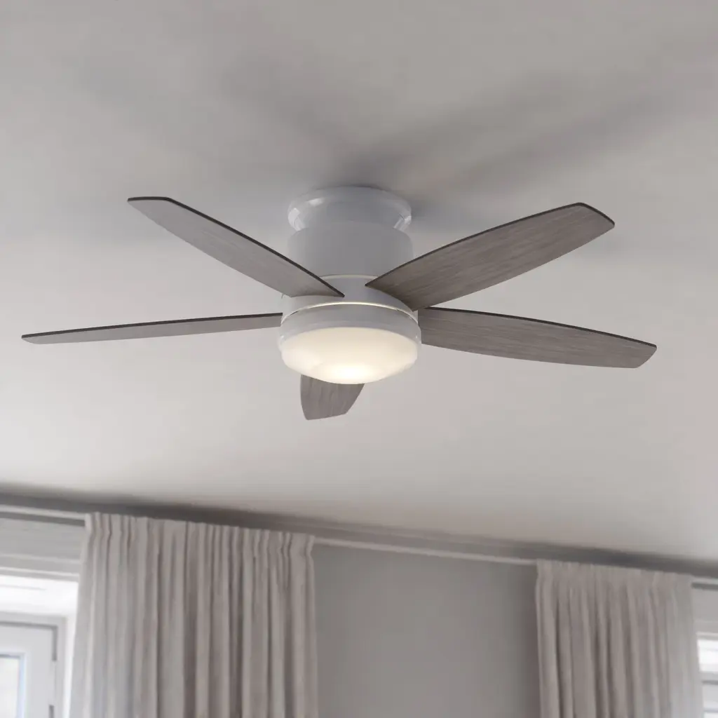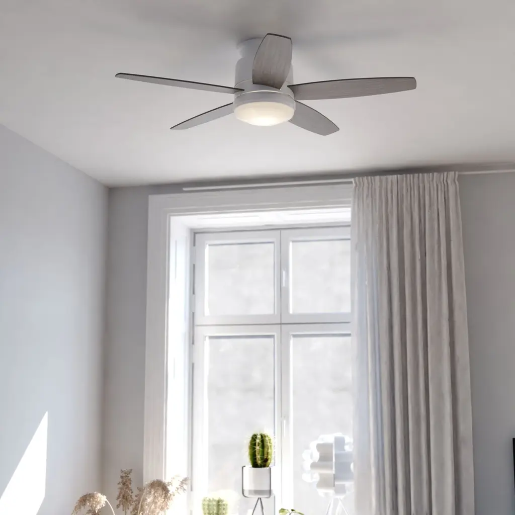 The low-profile 44-in. Armon ceiling fan adds minimalist design and maximum comfort to your modern interior. Its white housing accented by reversible white or gray elm blades, effortlessly blends style with functionality. Enjoy customizable LED illumination and comfort settings all at your fingertips via remote control. Backed by ETL safety certifications and a lifetime limited warranty, the Armon fan is a stylish and reliable choice for your home.