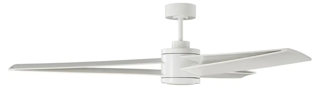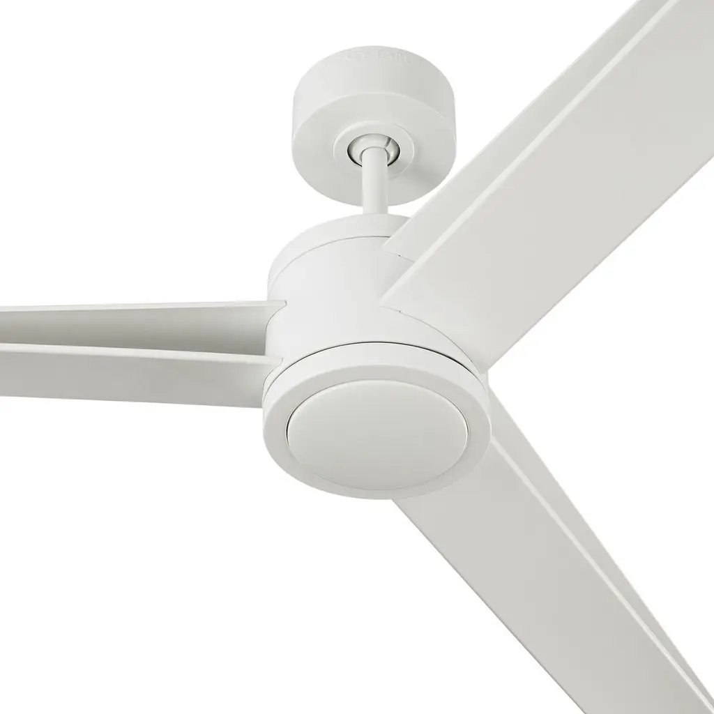 Featuring six clean-lined blades joined in three points with a 16-degree pitch and matte white finish, this EnergyStar-rated ceiling fan is also damp-rated for use in covered outdoor spaces and operates with an energy-efficient, six-speed DC motor. An integrated 15W LED downlight delivers 725 lumens of output. Hand-held remote control included.