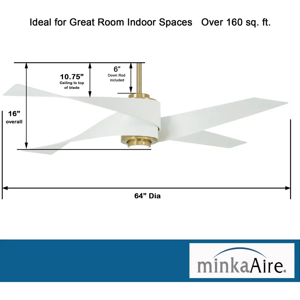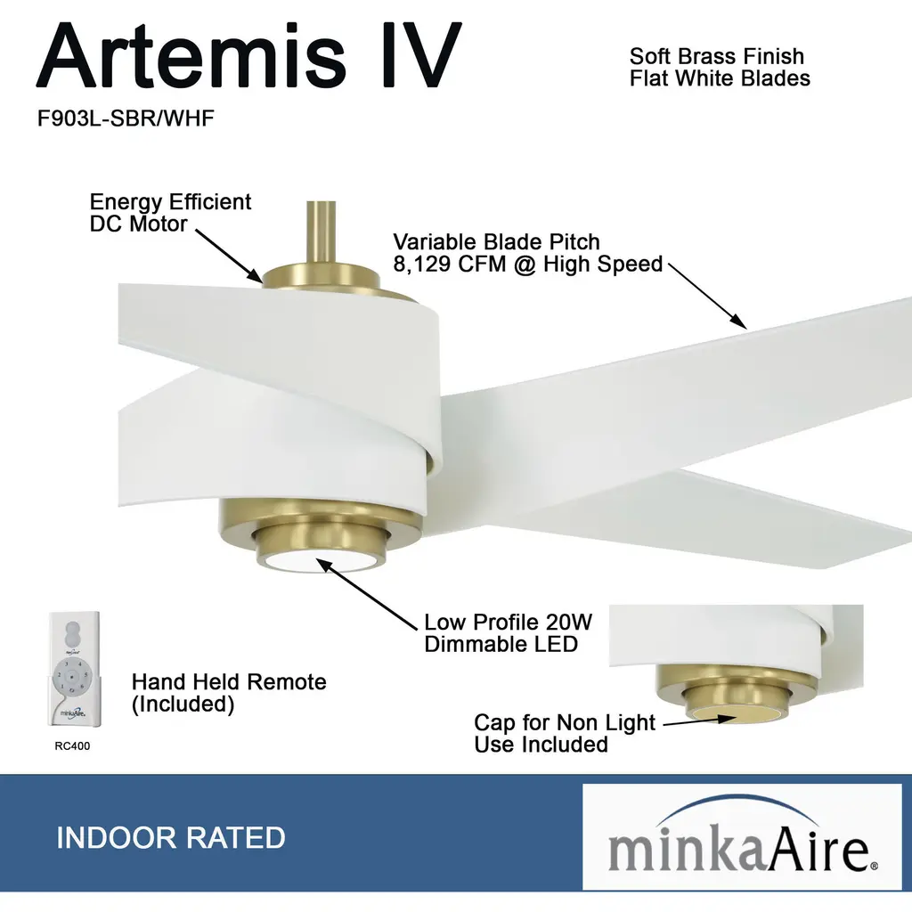 Artemis Iv 64 Inch Soft Brass With Flat White Blades Ceiling Fan In Soft Brass/flat White