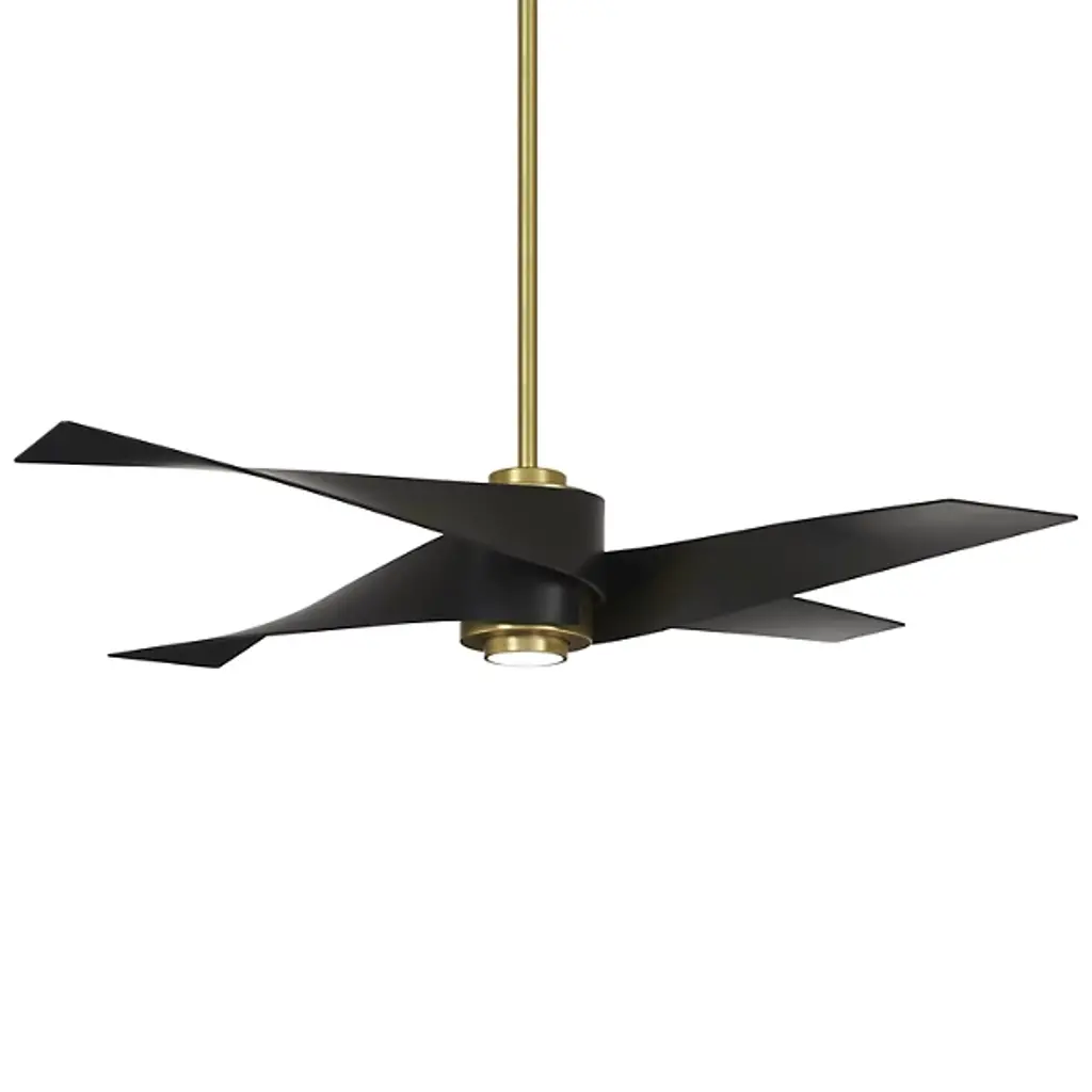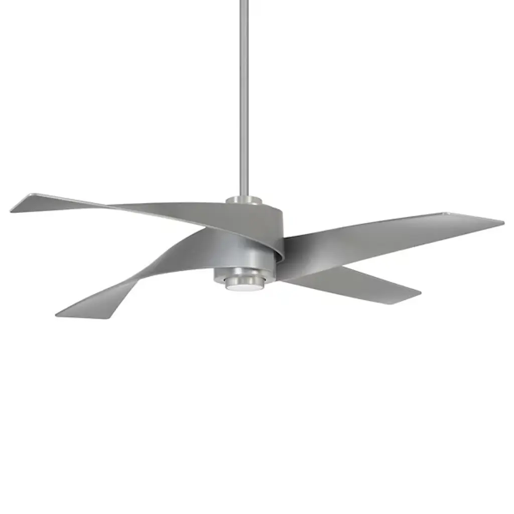 The Artemis IV LED Ceiling Fan by Minka Aire Fans sports fan blades that seemingly twist to make a groovy statement in any space. Crafted from metal and polymer plastic, the Artemis makes a grand statement with its visually captivating design. Four blades span 64 inches for ample airflow in small or large rooms. The fan also utilizes a dimmable, energy-efficient LED downlight with a rated life of 30,000 hours. Handheld remote control included for convenient use.